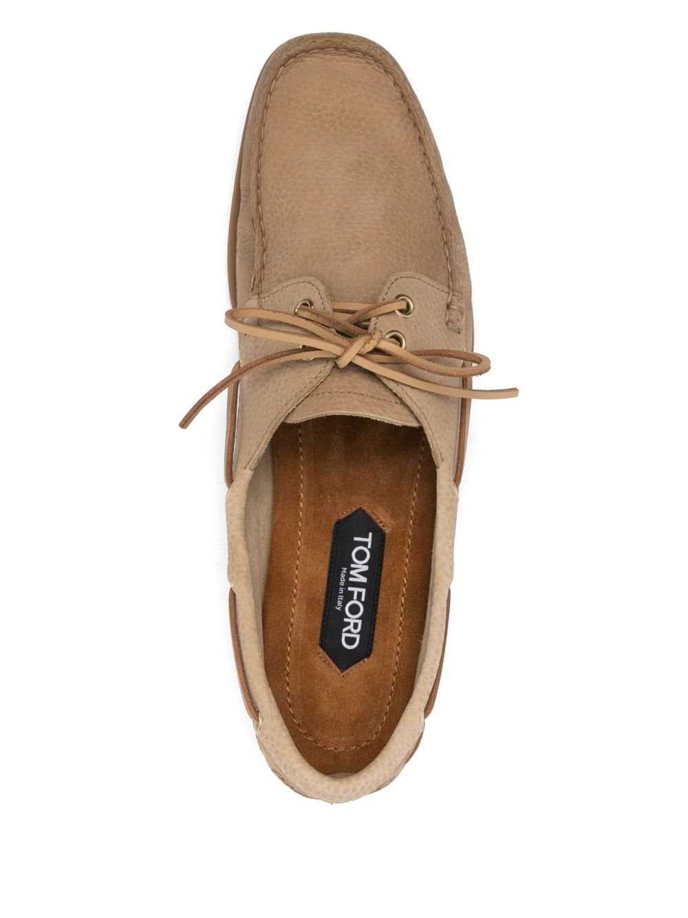 Expertly crafted with light beige leather, these boat shoes feature a front lace-up fastening for a secure fit and a square toe for added style. Complete with a rubber sole for durability, these shoes are perfect for a day out on the boat or a casual outing.