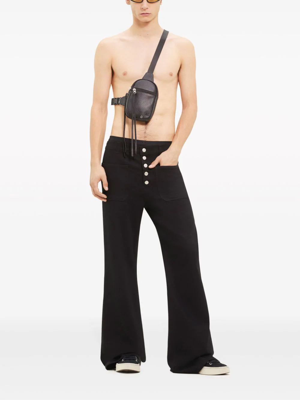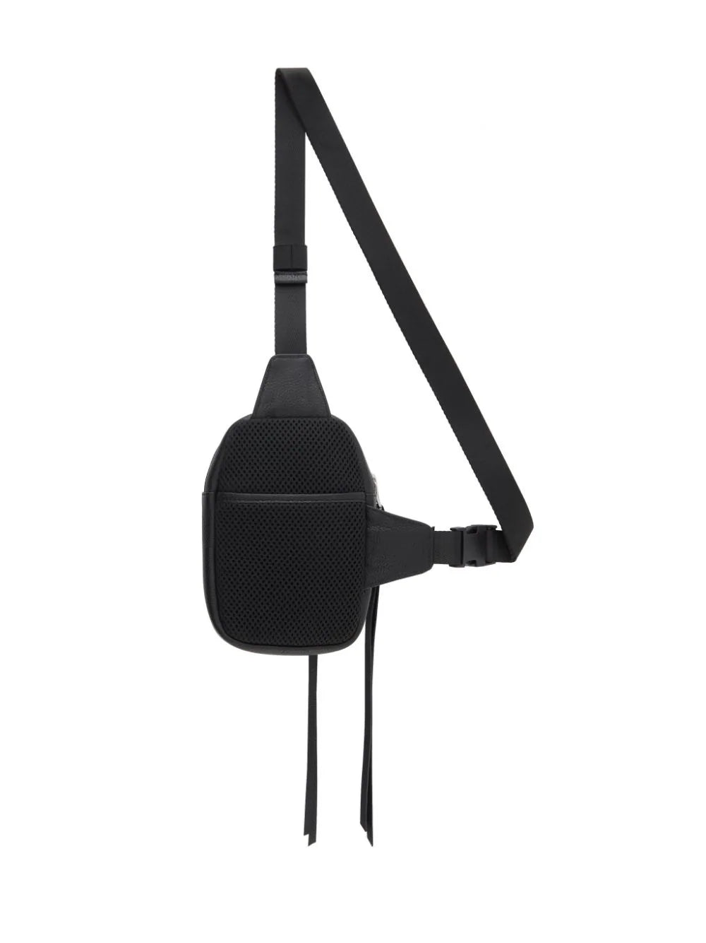 black calf leather pebbled texture adjustable shoulder strap metal eyelet detailing front zip-fastening pocket embroidered logo to the front mesh pocket to the rear full lining internal slip pocket top zip fastening