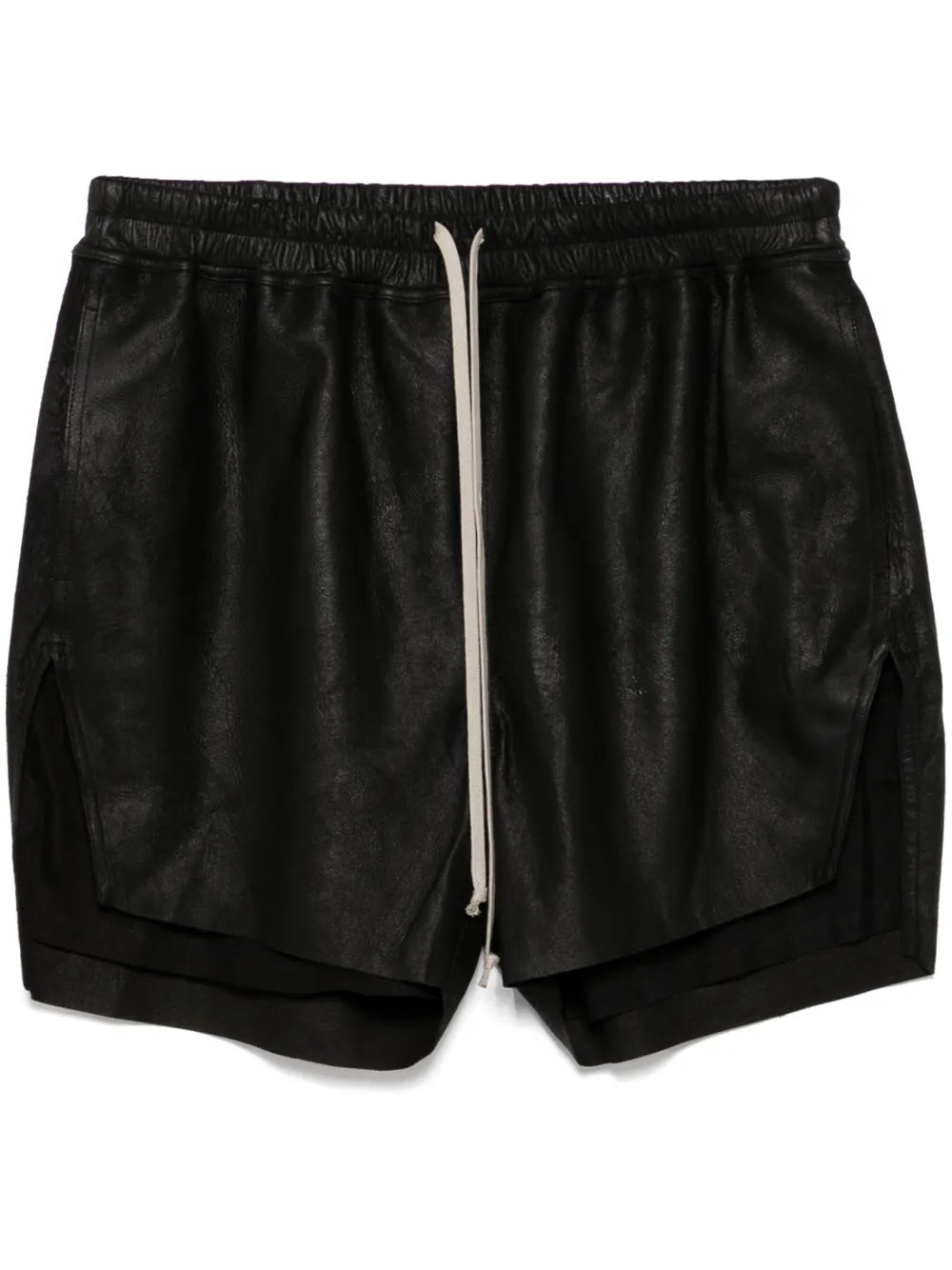 These black leather shorts feature an elasticated drawstring waistband, two side inset pockets, and a full lining. Designed with comfort and functionality in mind, they provide a secure fit and ample storage for your daily essentials. Expertly crafted, these shorts are a versatile addition to any wardrobe.