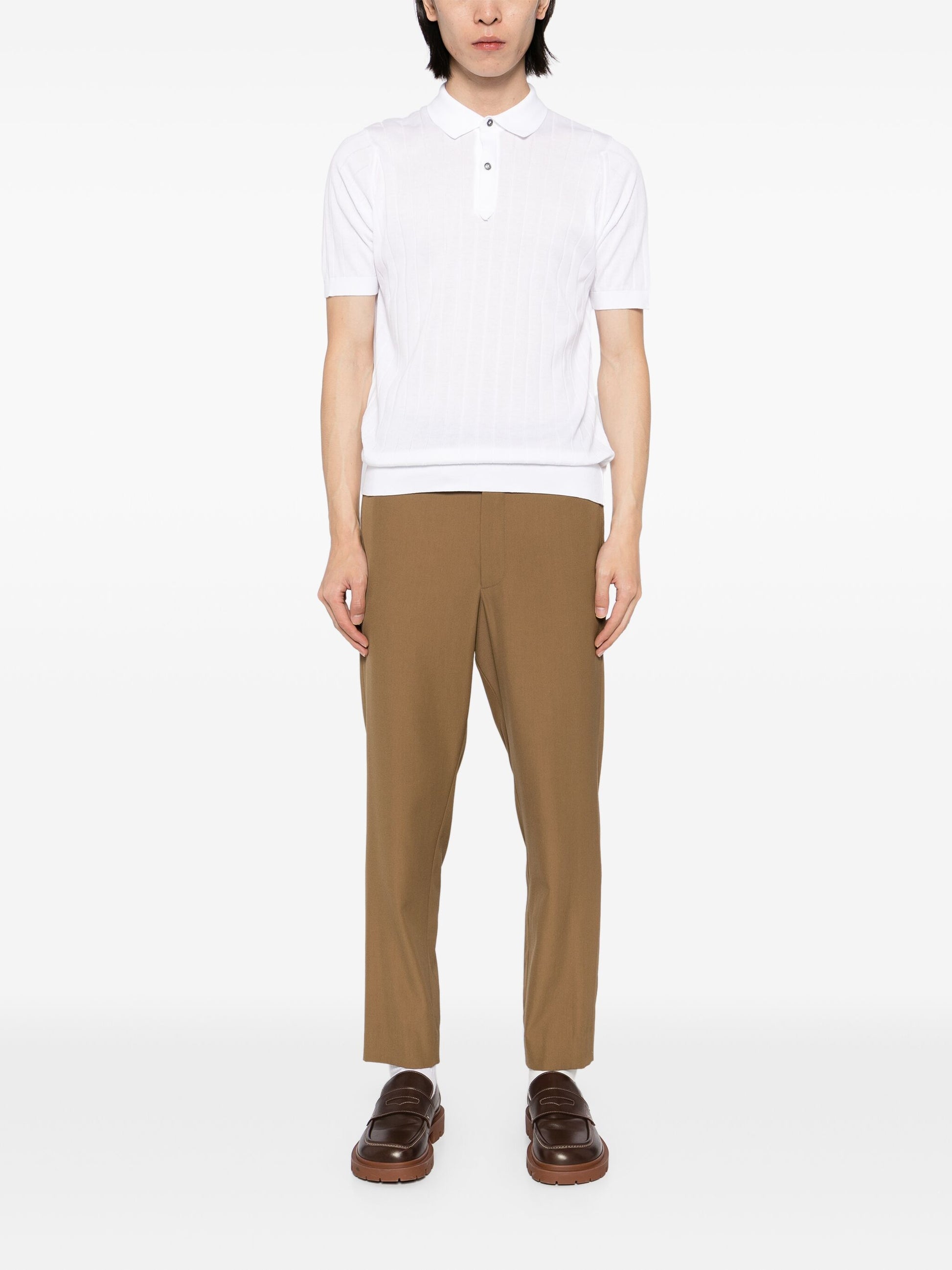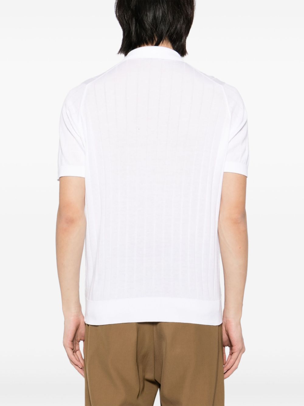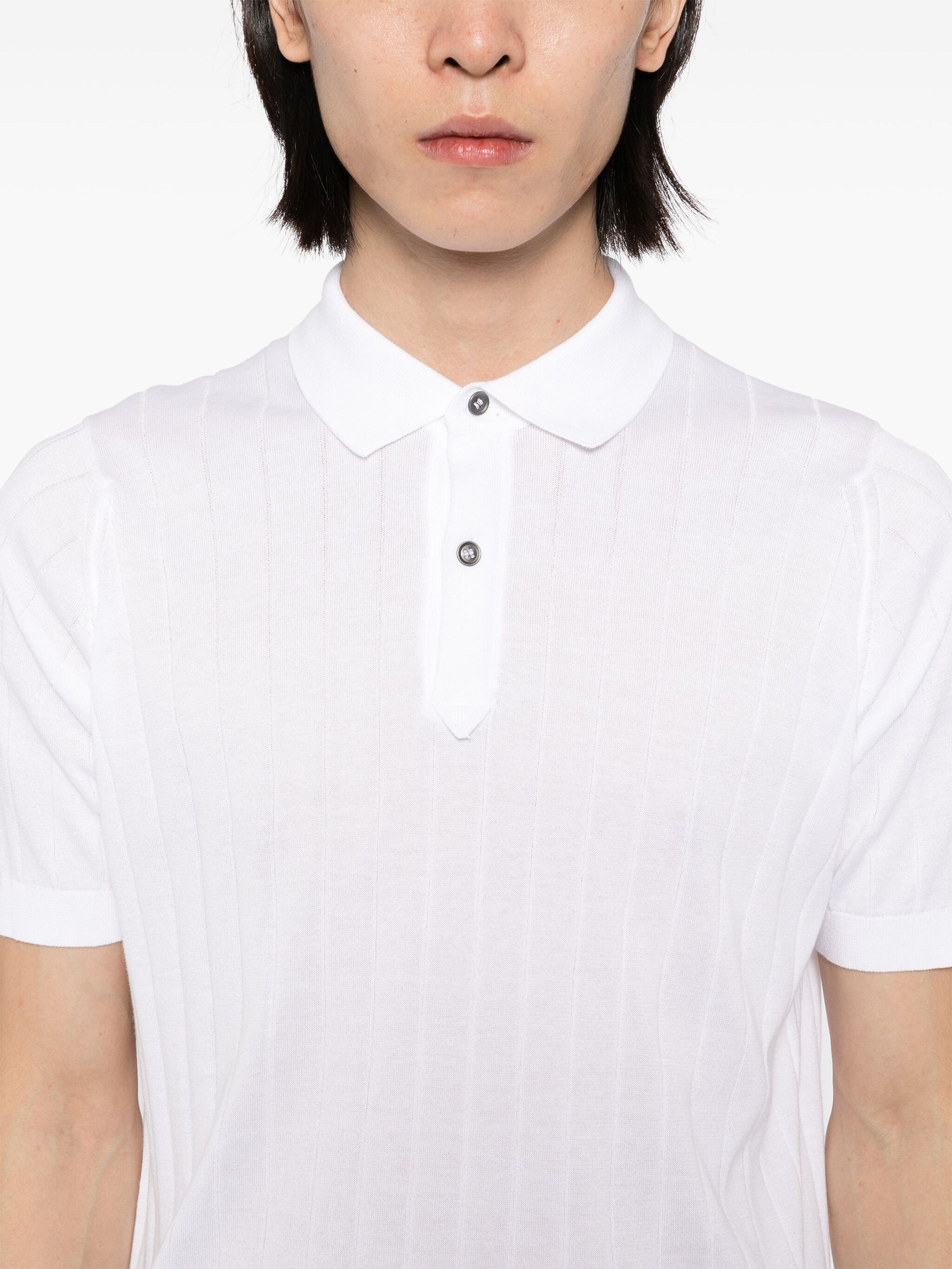 Constructed with a white front button placket, ribbed cuffs and hem, and a straight hem, the Leeshaw Cotton Polo Shirt offers a sleek, polished look. Made of high-quality cotton, this shirt is both comfortable and durable, making it perfect for any occasion.