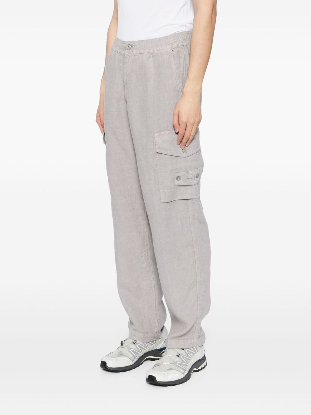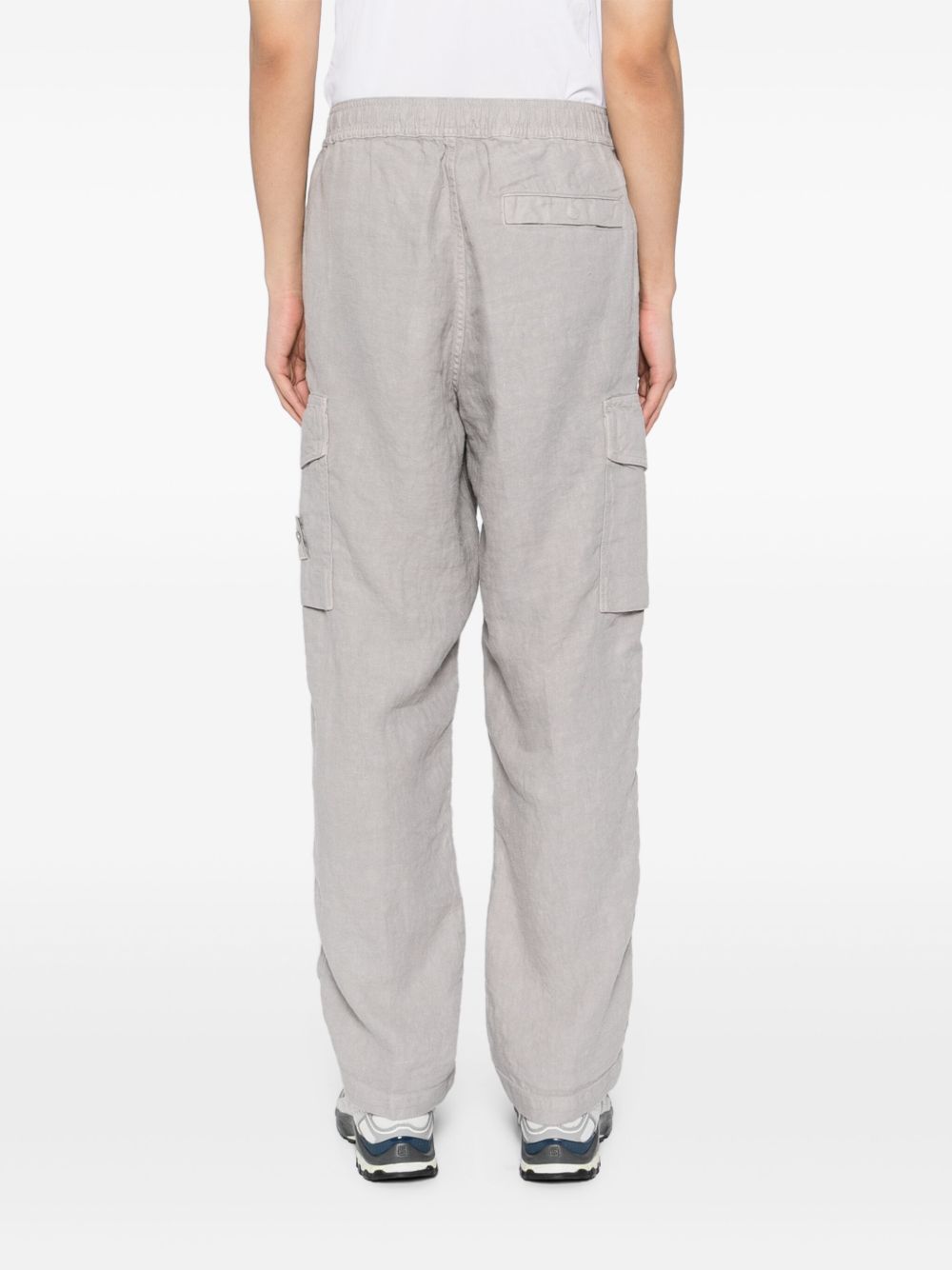 Expertly crafted with a light grey front button and zip fastening, these linen trousers feature an elasticated drawstring waistband for a comfortable fit. Equipped with two side cargo pockets, they offer practicality and style in one. Perfect for any occasion, these trousers are a must-have addition to your wardrobe.