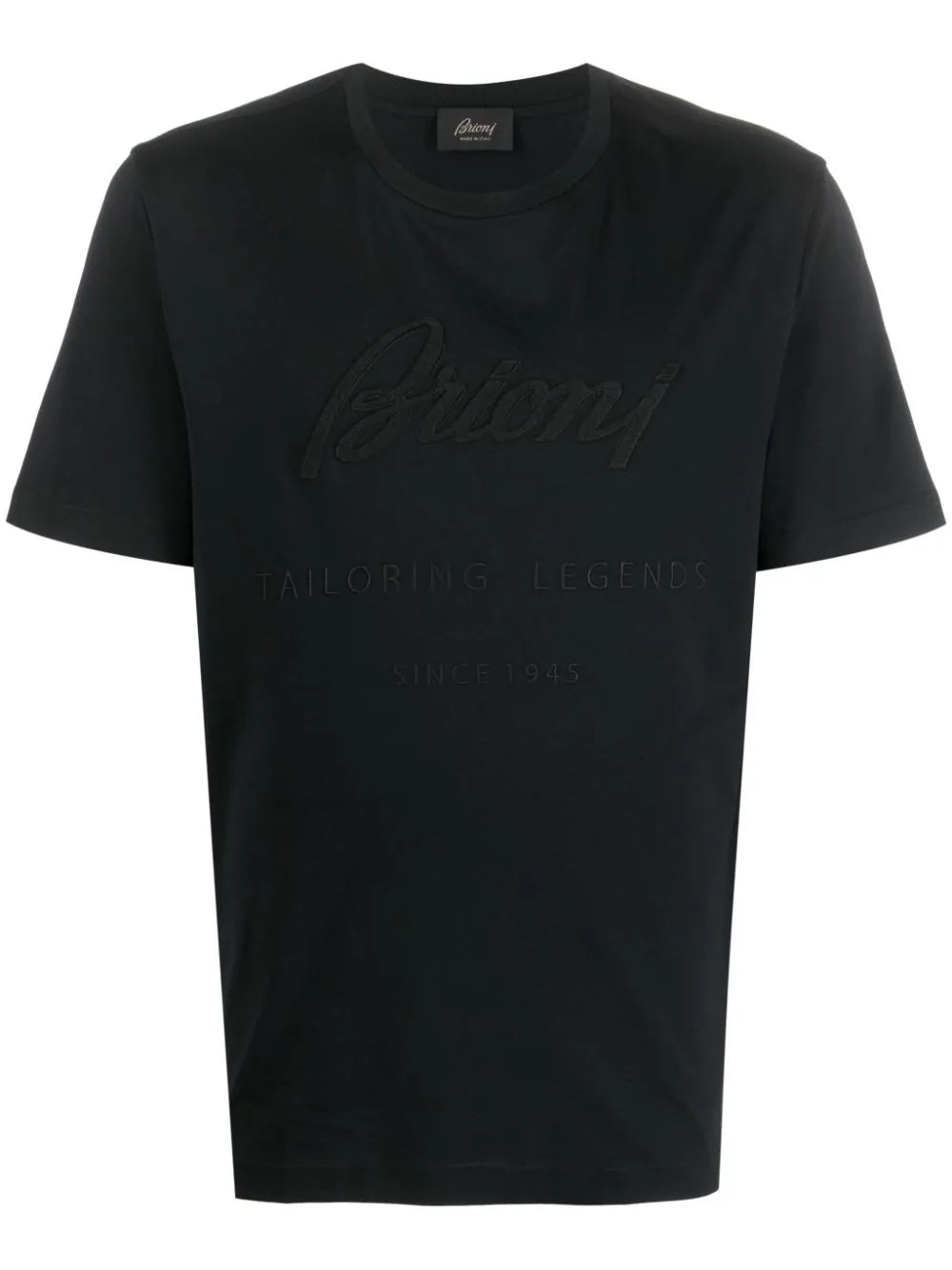 logo-appliqué cotton T-shirt from BRIONI featuring black, cotton, embroidered logo to the front, appliqué logo, crew neck, short sleeves and straight hem.