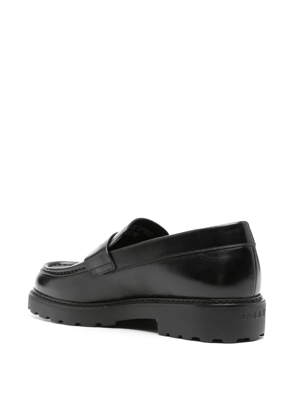 Crafted from premium black calf leather, these Logo-Debossed Leather Loafers offer both sophistication and comfort. The almond toe and penny slot add a stylish touch, while the debossed logo and mini logo tag showcase attention to detail. With a low block heel and chunky rubber sole, these slip-on loafers combine style and practicality.