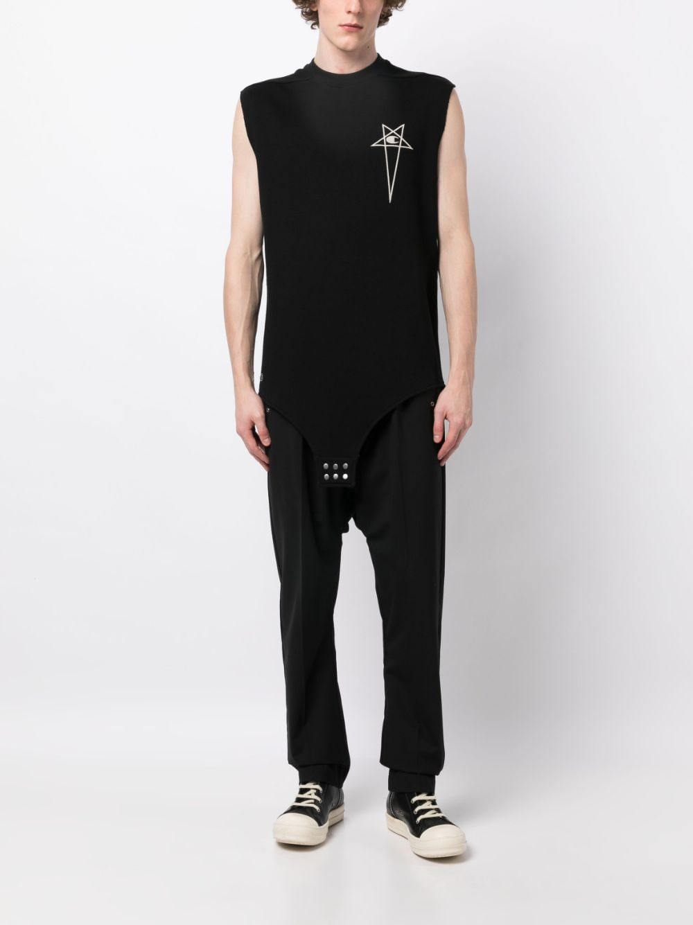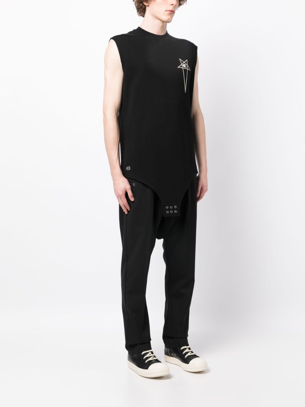 logo-embroidered cotton tank top from Rick Owens X Champion featuring black, cotton, embroidered logo at the chest, silver-tone hardware, crew neck, snap-fit fastening and sleeveless.