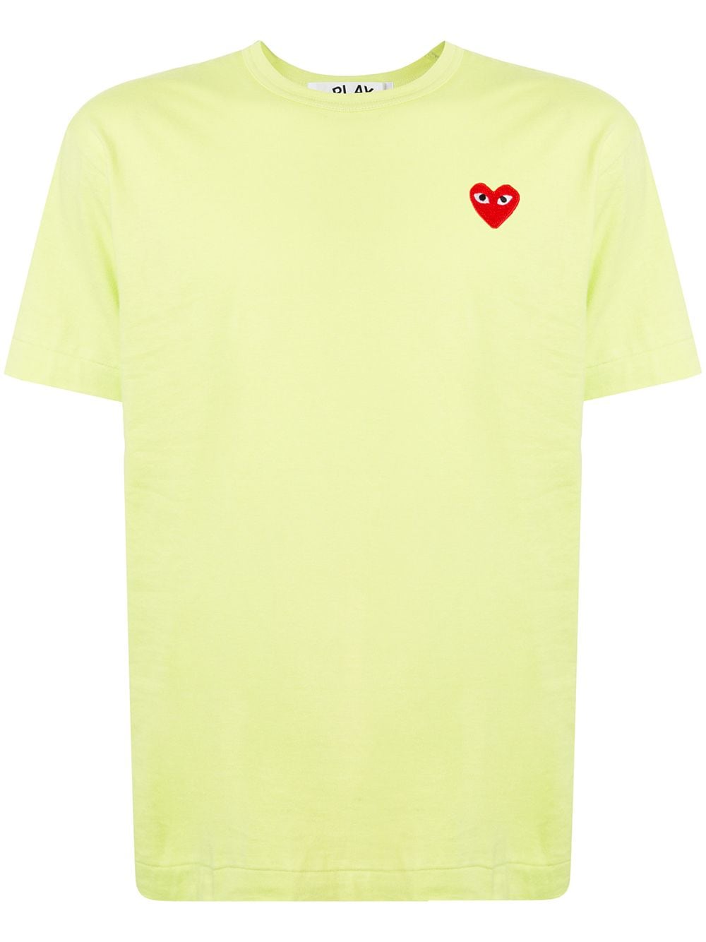 Lime green cotton logo embroidered crewneck T-shirt from Comme Des Garçons Play featuring a logo to the chest, short sleeves, a straight hem and a finished hem.
