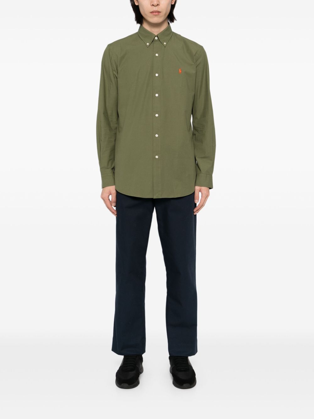 This Logo Embroidered Shirt features a classic collar and long sleeves with buttoned cuffs. The green front button fastening adds a sophisticated touch to this timeless piece. Expertly crafted, this shirt is perfect for any formal occasion.