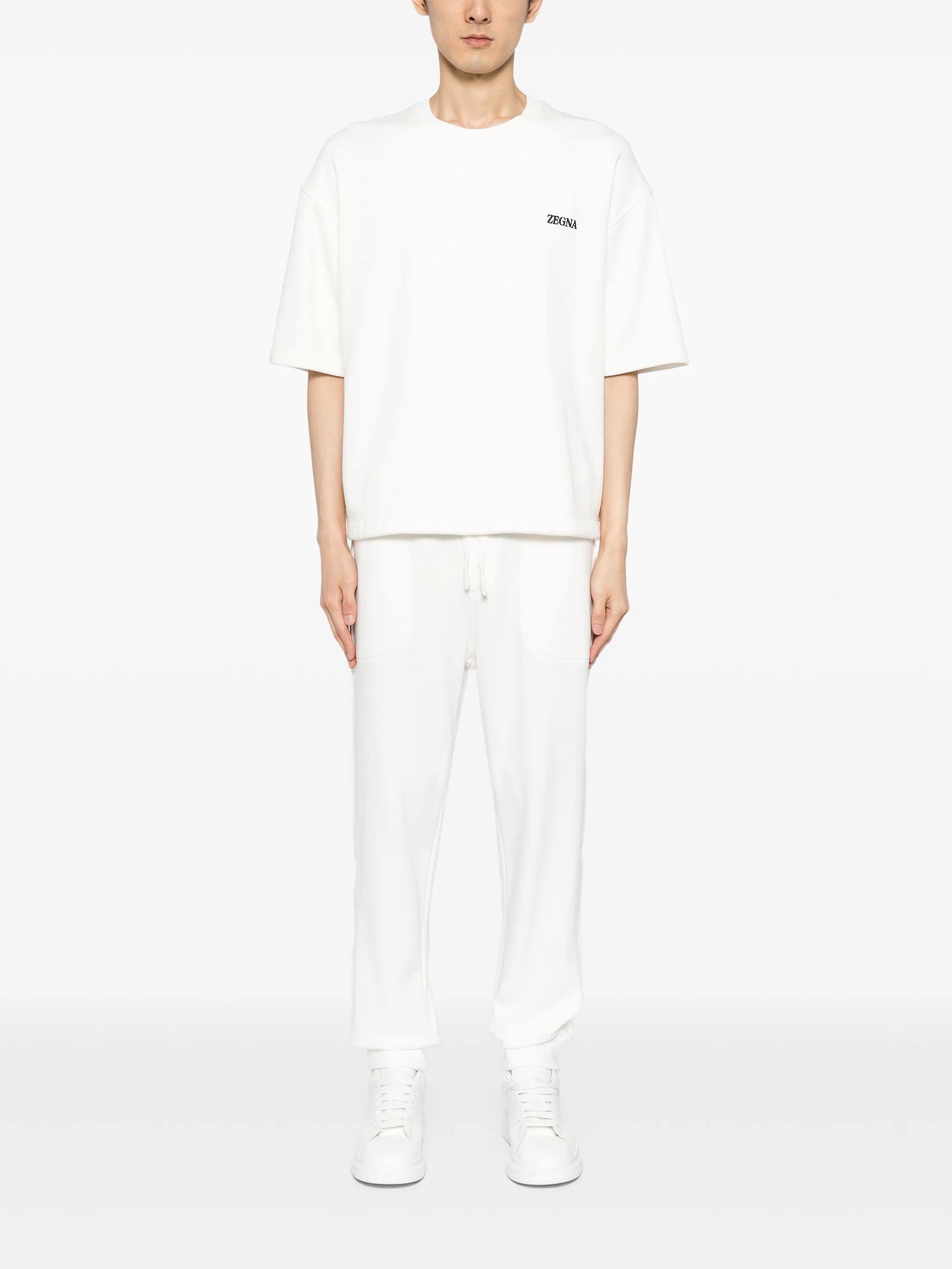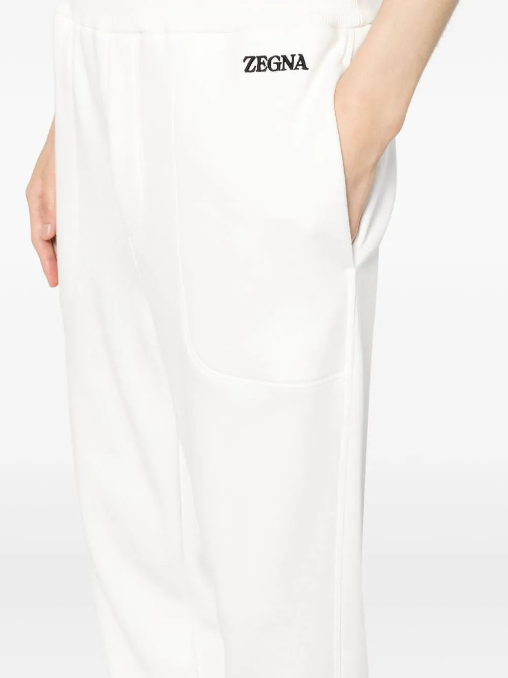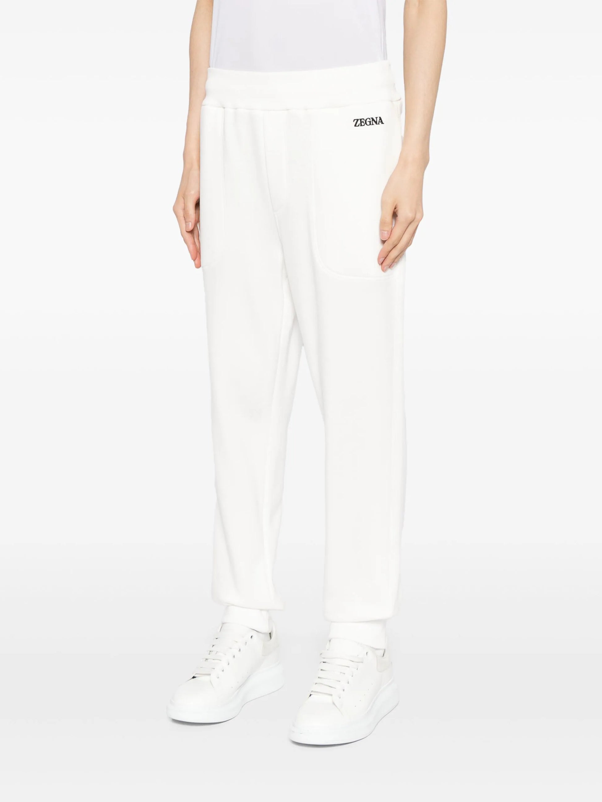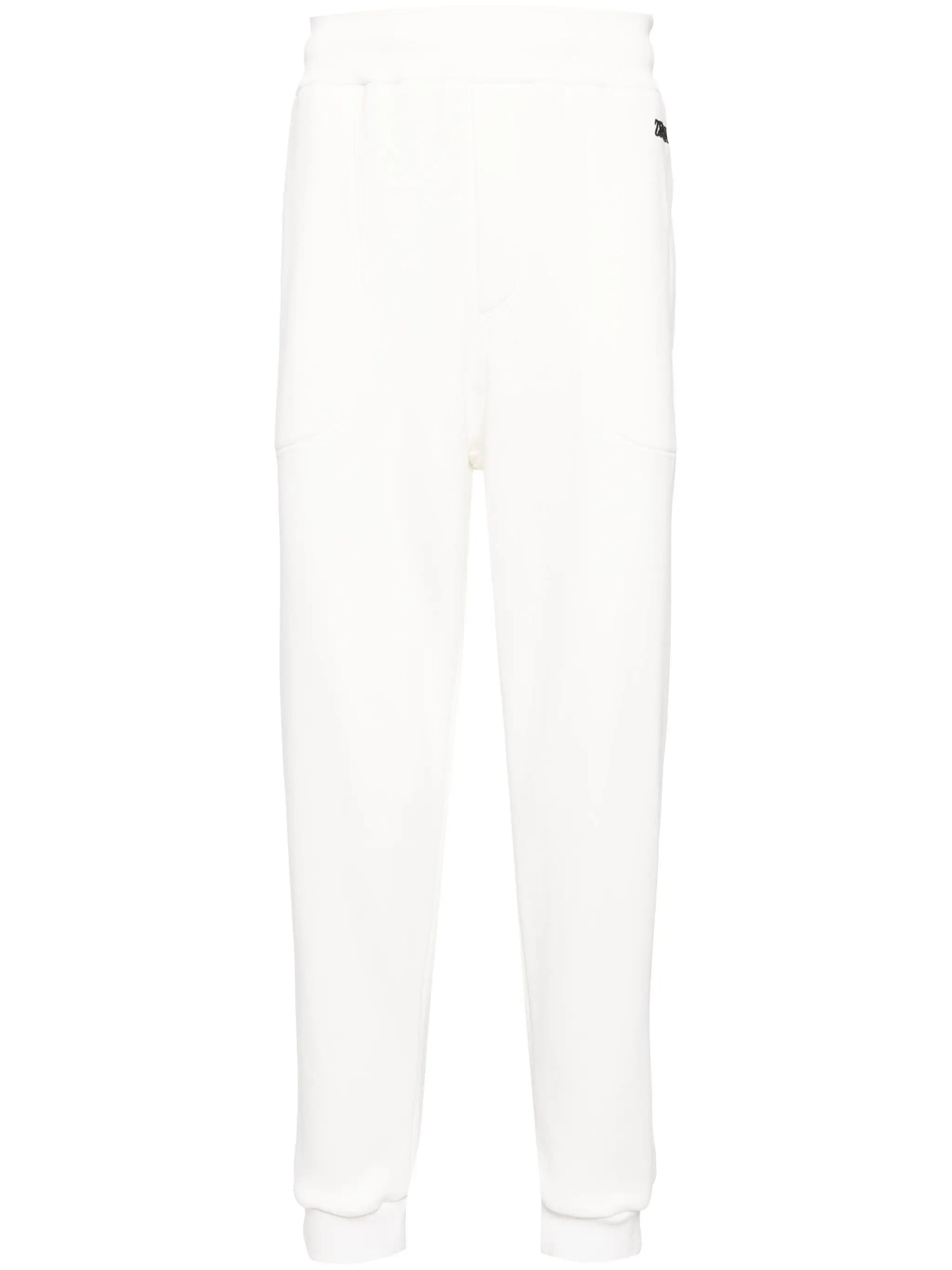 white cotton blend embroidered logo to the side elasticated waistband slip pockets to the sides straight leg elasticated ankles