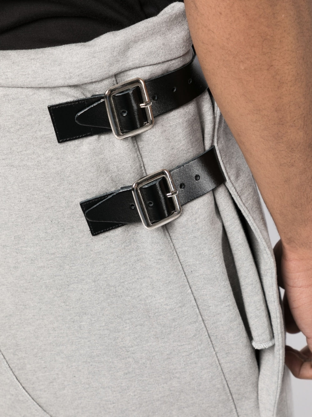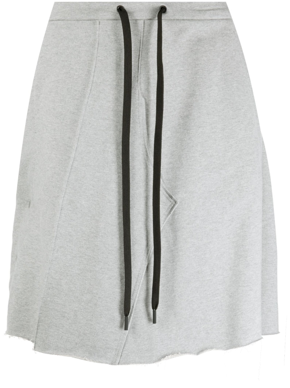 logo-patch cotton track shorts from JORDANLUCA featuring light grey, cotton, logo patch to the rear, side press-stud fastening, drawstring fastening waist, buckle-strap fastening and rear patch pocket.