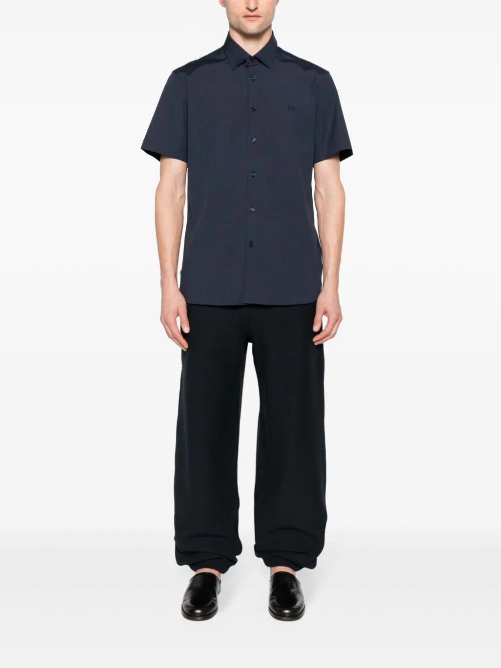 black cotton jersey texture signature Equestrian Knight motif logo patch to the rear mid-rise elasticated waistband with internal drawstring two side slit pockets rear patch pocket straight leg elasticated ankles cropped leg