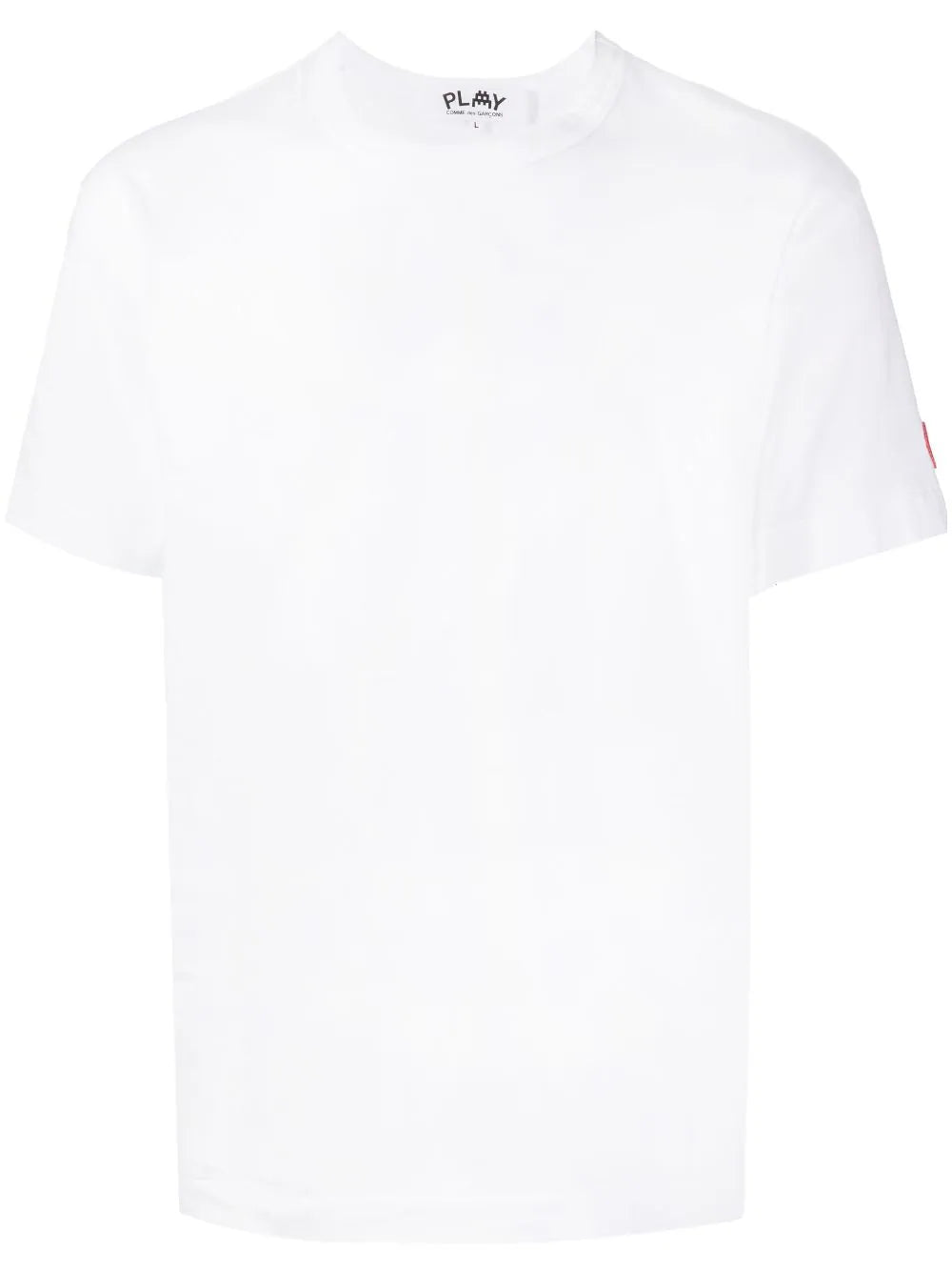 logo-patch crew-neck T-shirt from COMME DES GARÇONS PLAY featuring white, cotton, logo print at the sleeve, crew neck, short sleeves and straight hem.