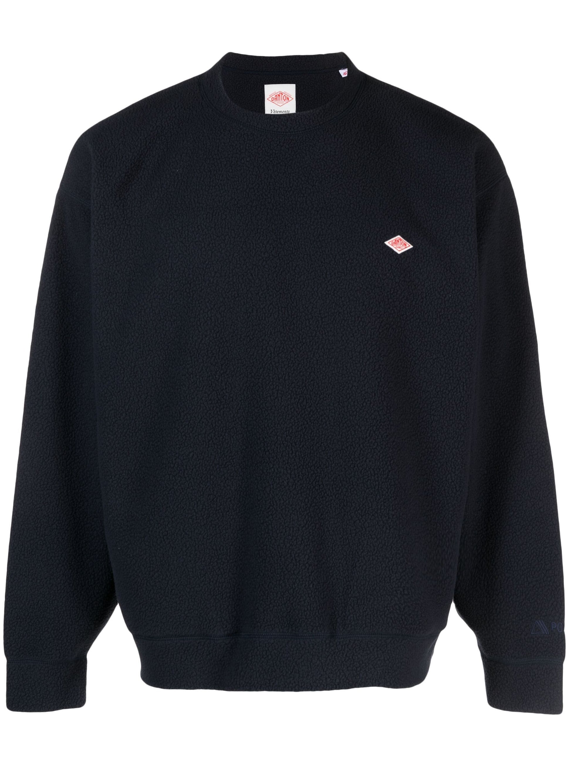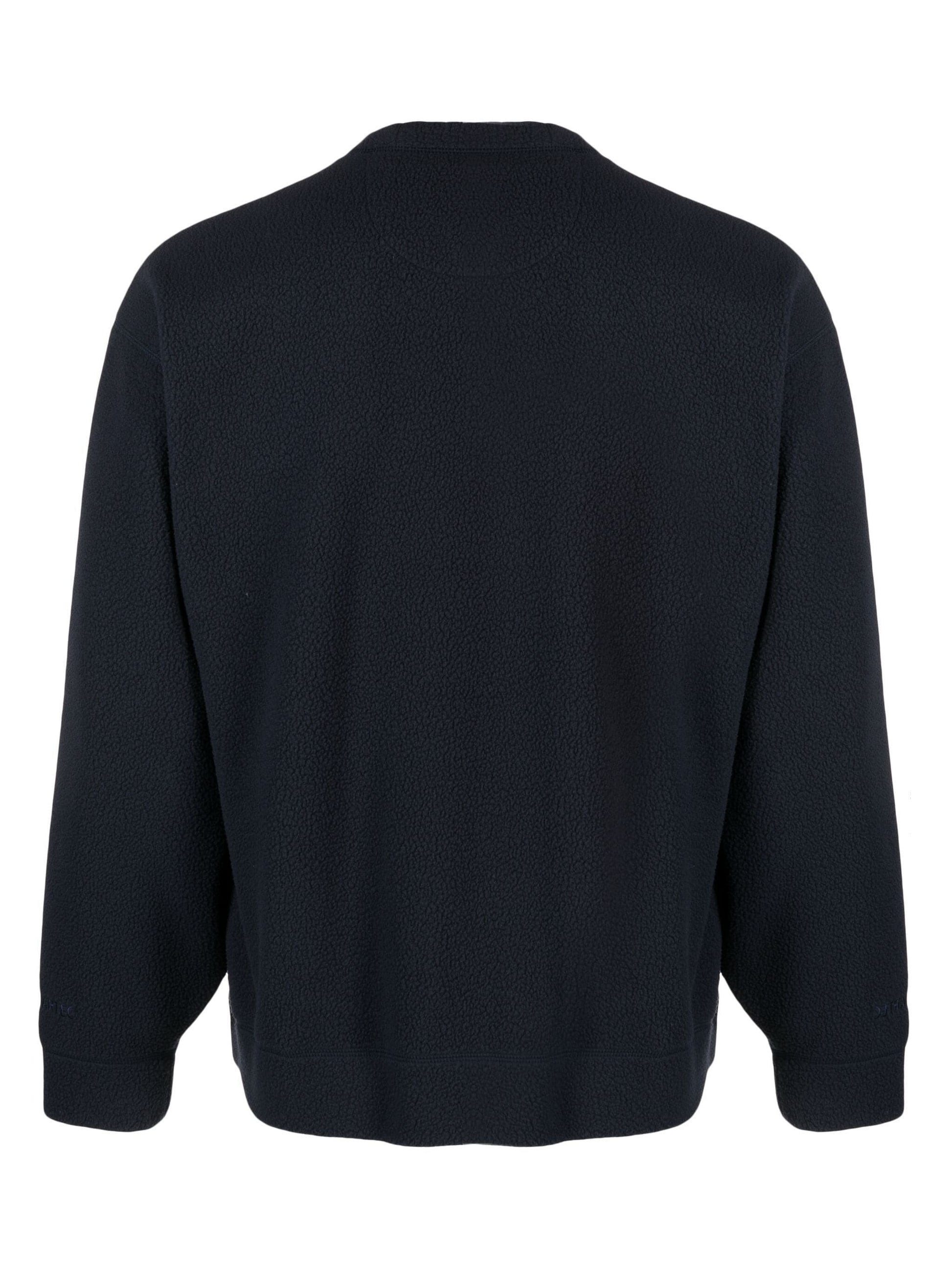 navy blue fleece texture exposed-seam detailing round neck long sleeves two side inset pockets straight hem