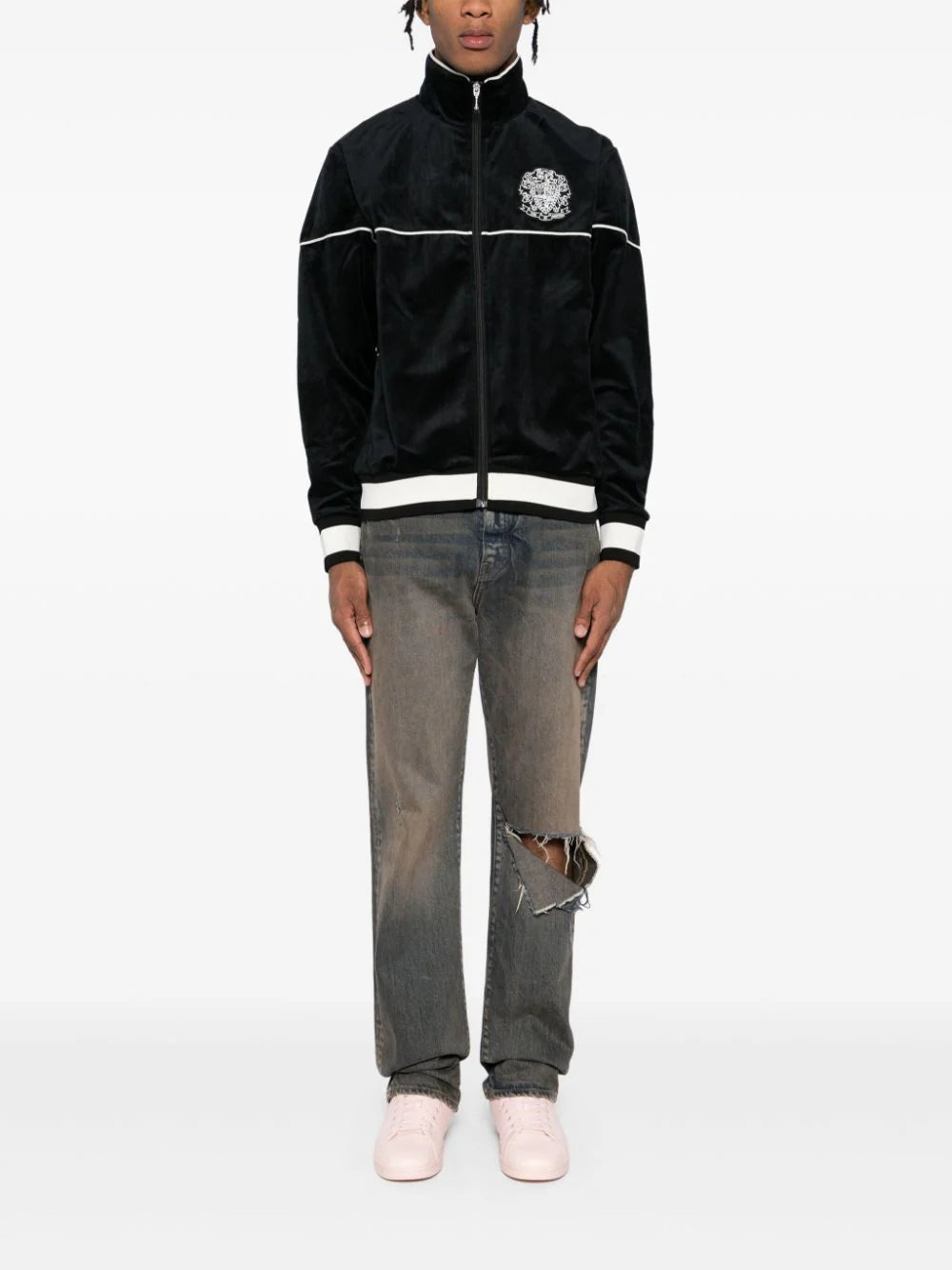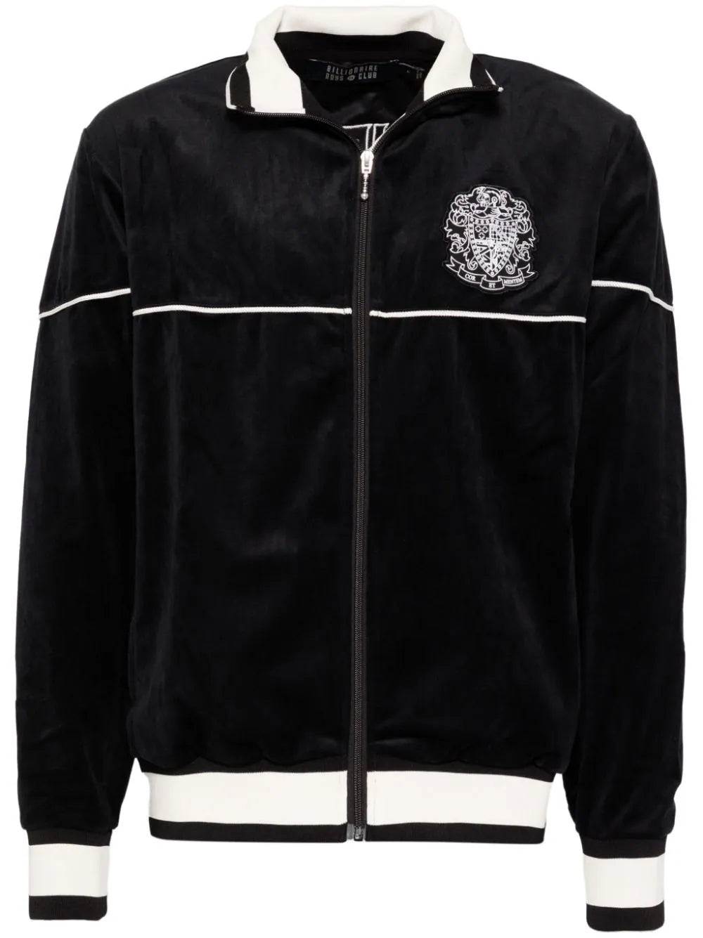 Add a touch of luxury to your wardrobe with our Logo-Patch Jacket. This stylish and sophisticated jacket features a black and white design with a front zip fastening, logo patch, and embroidered logo on the rear. The stripe trim and ribbed cuffs and hem add a unique touch to this exclusive piece. Elevate your style with this premium jacket.