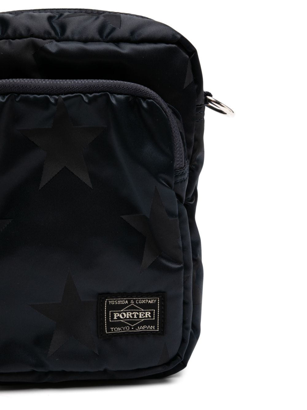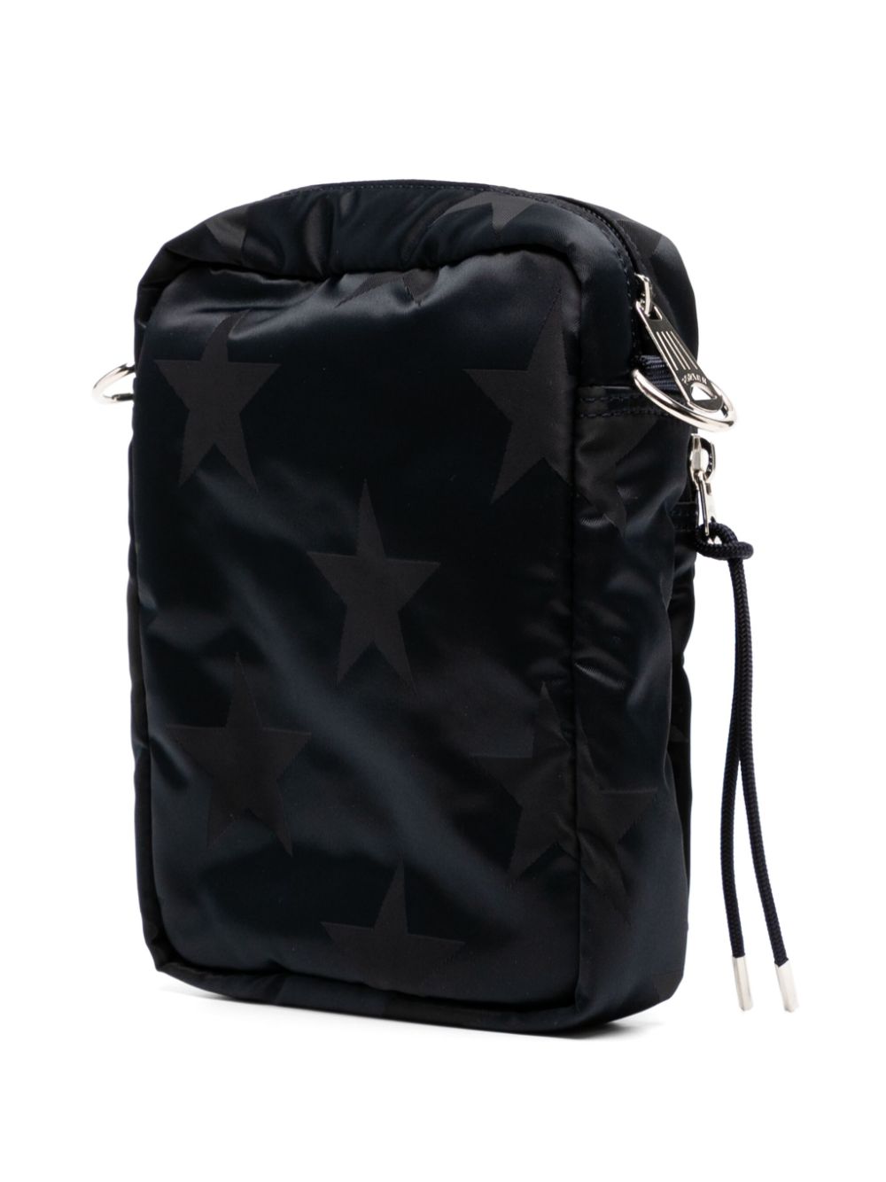 This navy blue shoulder bag features an all-over star print and an adjustable, detachable shoulder strap. The front pocket and main compartment both have zip fastenings, with an internal pocket for added storage. Complete with a logo patch on the front, this bag offers functionality and style.