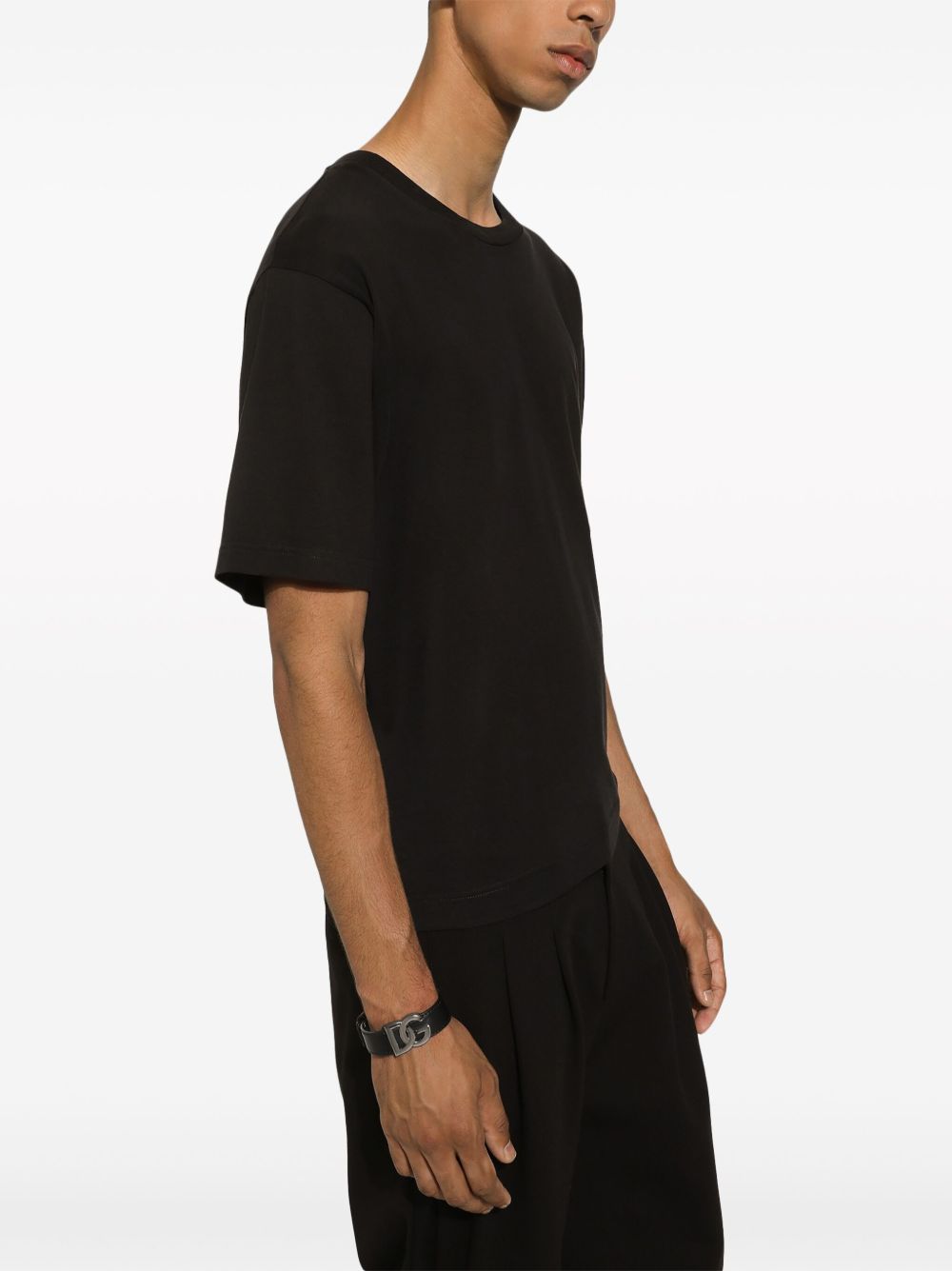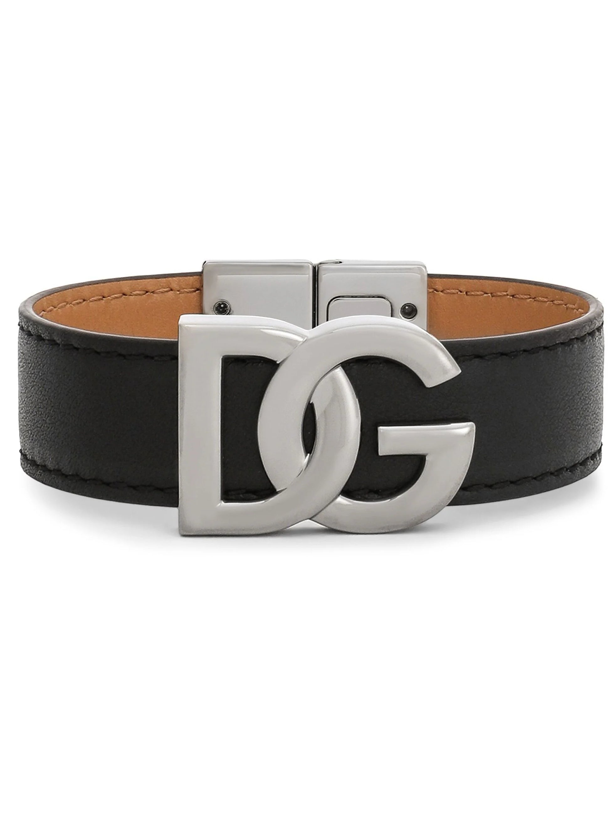 black calf leather smooth grain logo plaque silver-tone hardware engraved logo
