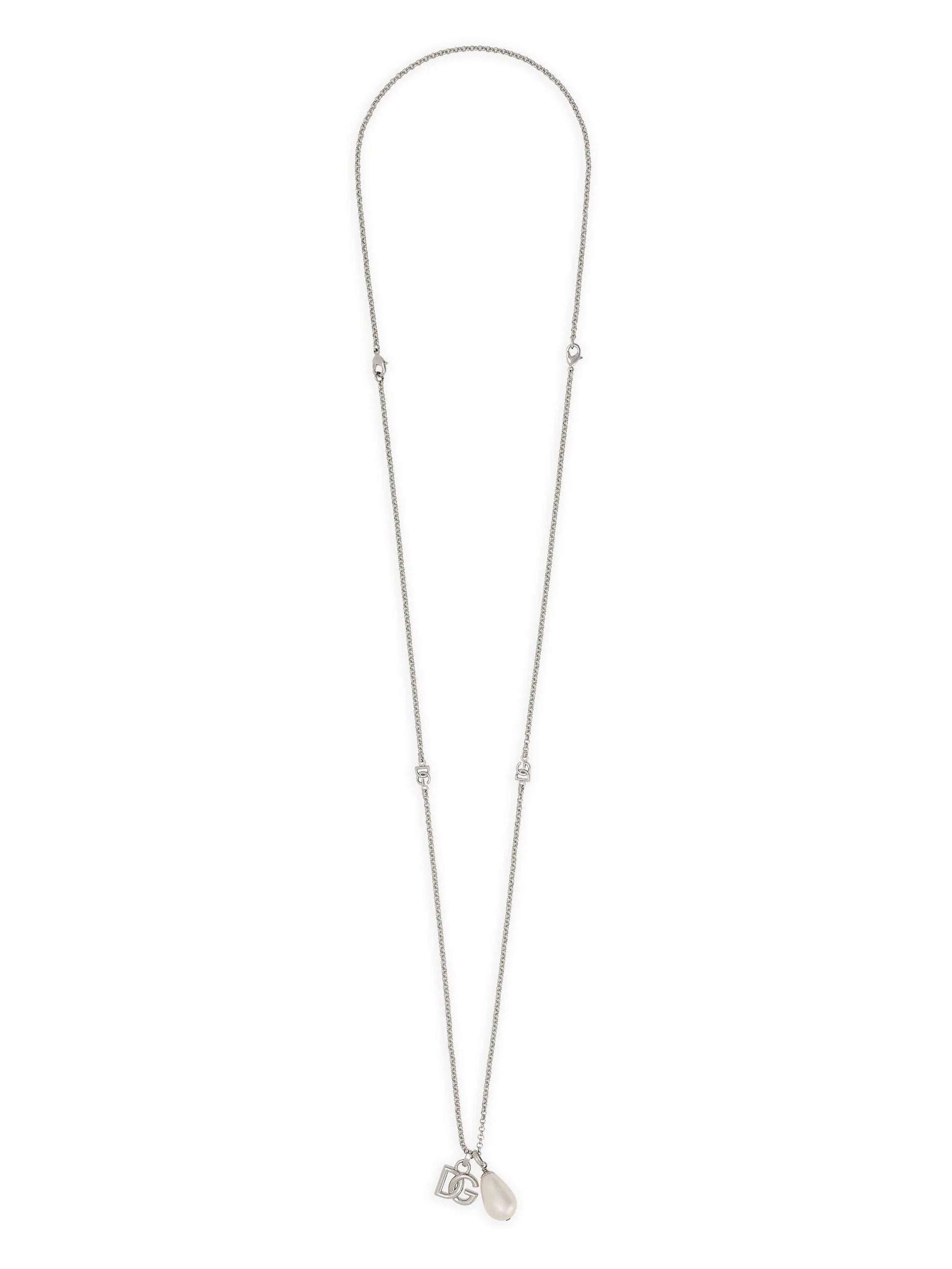silver-tone brass polished finish silver-tone logo pendant faux-pearl pendant delicate chain logo plaque detail adjustable fit lobster claw fastening
