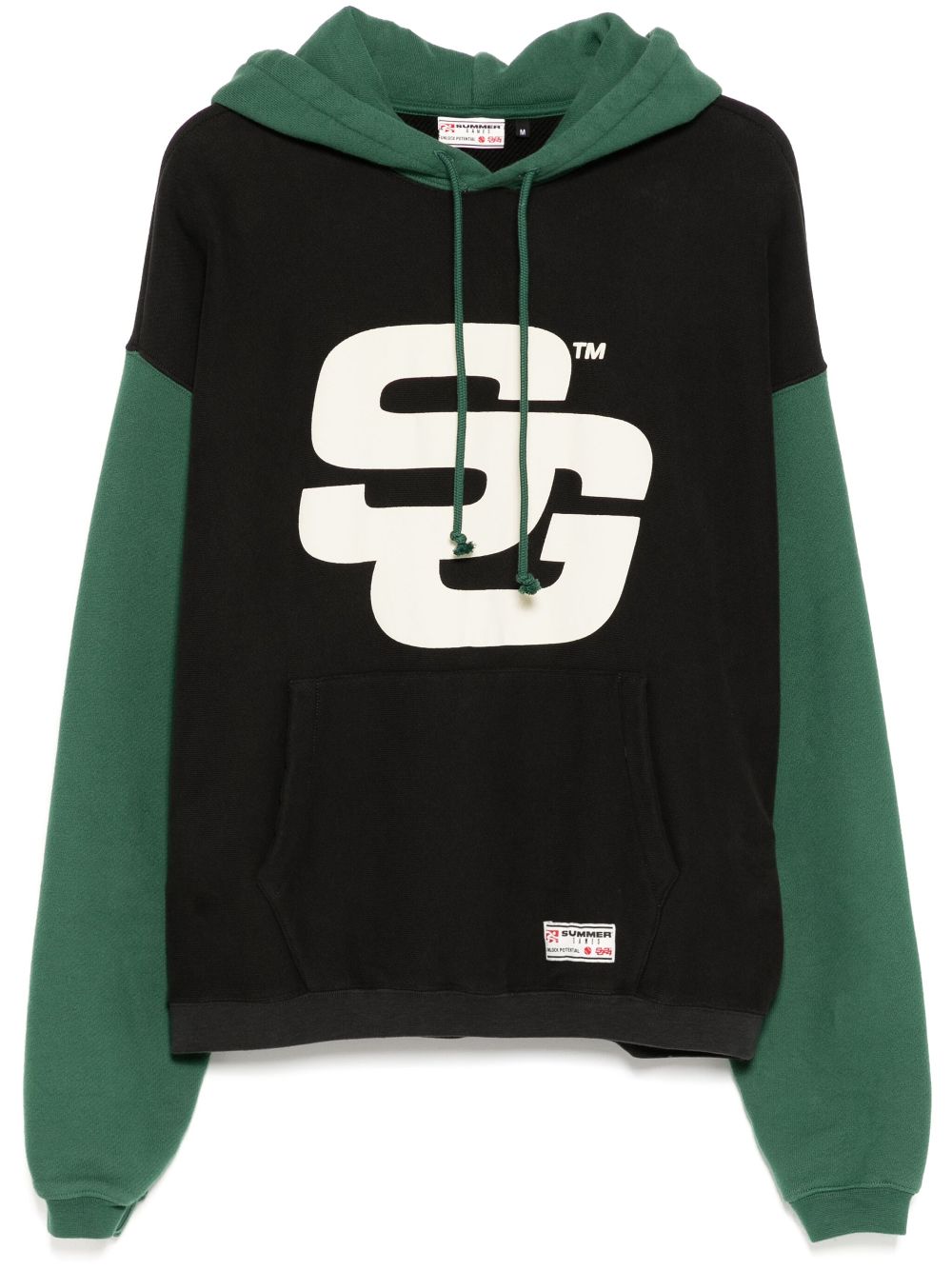 Step out in style with our Logo Print Hoodie. Designed with a dark green drawstring hood and long sleeves for added warmth, this hoodie also features a convenient slash pocket and a bold logo print on the front. Stay cozy and on-trend with this must-have addition to your wardrobe.
