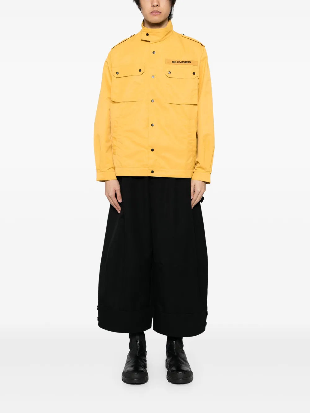 Expertly crafted from durable nylon, this Logo-Print Jacket features a distinctive mustard yellow press-stud fastening. The front design showcases our iconic logo, while the two chest flap pockets and two front button-fastening jetted pockets provide both style and functionality. Perfect for any fashion-forward individual.