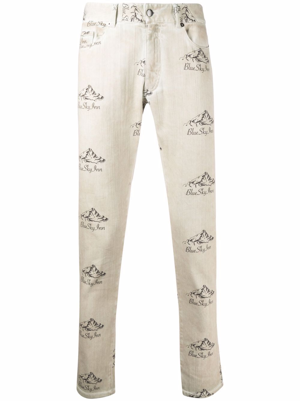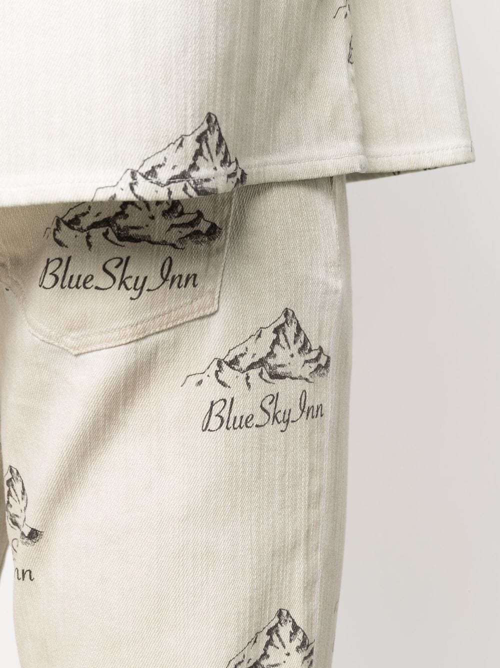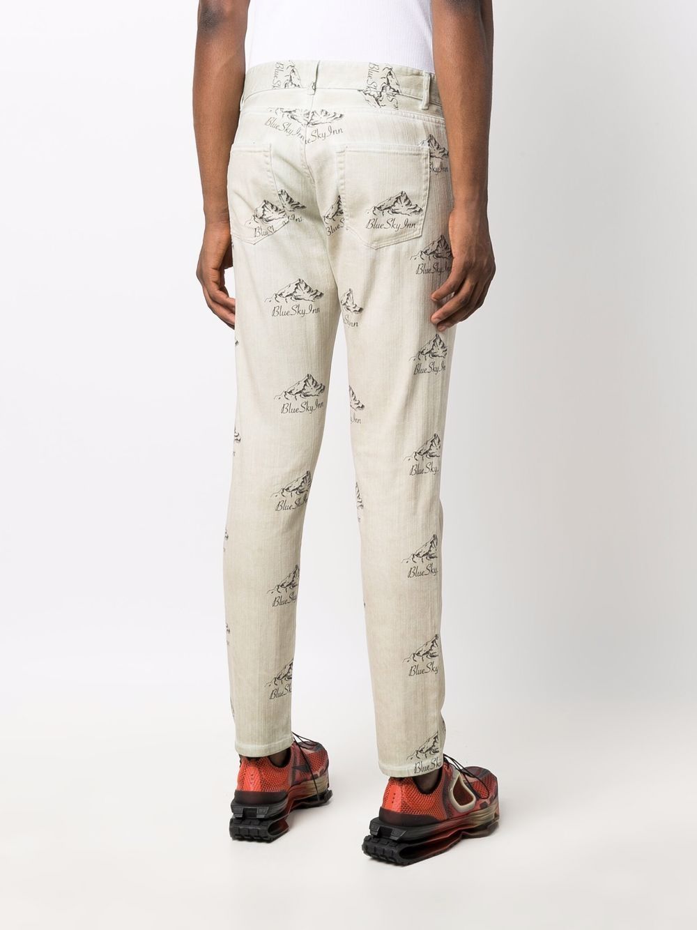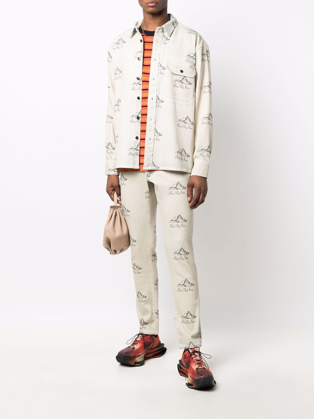 White cotton blend logo print trousers from BLUE SKY INN featuring all-over logo print, zip fly fastening, belt loops and straight leg.