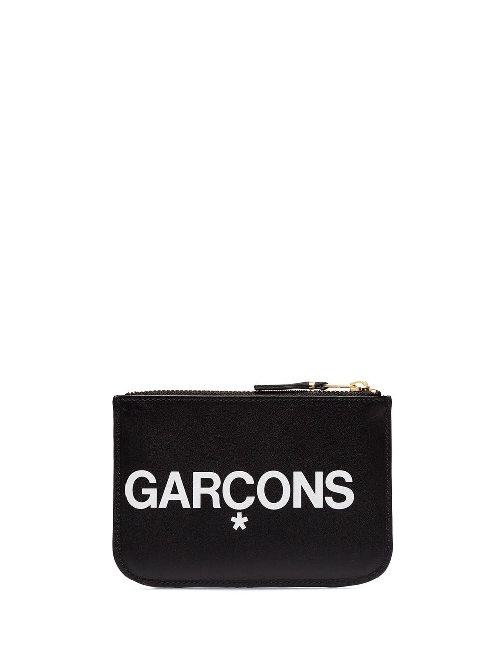 Iconic Japanese brand Comme des Garçons continues to produce innovative products that offer a sleek, stylish alternative to everyday essentials. This black leather logo print pouch from Comme Des Garçons Wallet features a top zip fastening, a contrasting wrap-around logo print, gold-tone hardware and a gold-tone logo detail.