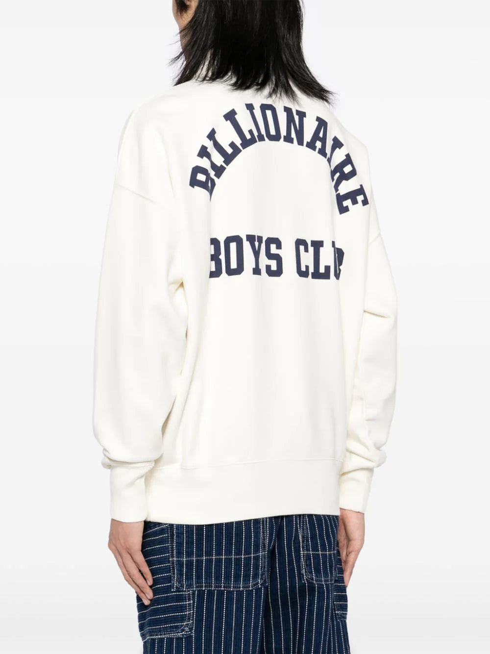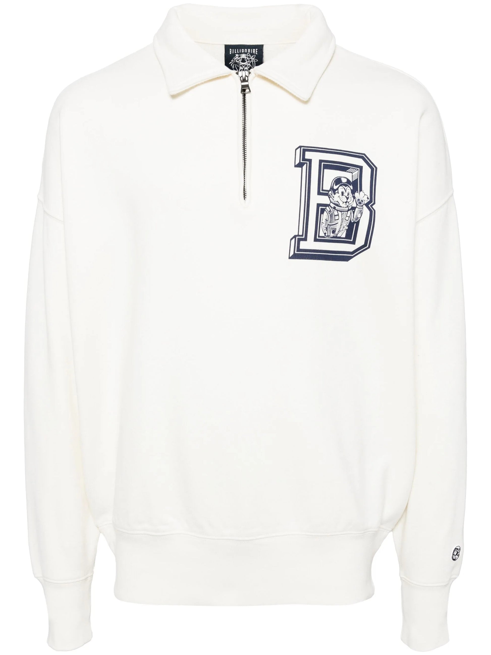 white/navy cotton jersey texture short front zip fastening classic collar logo print to the front slogan print to the rear long sleeves ribbed cuffs and hem straight hem French terry lining