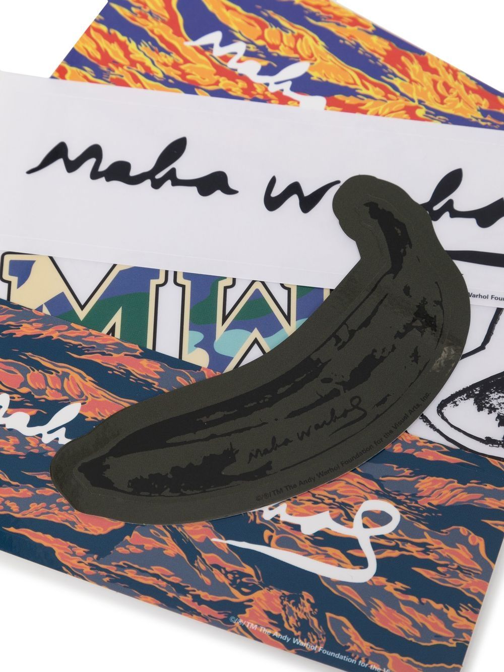 Multicolor logo sticker set from MAHARISHI featuring cursive logo print.