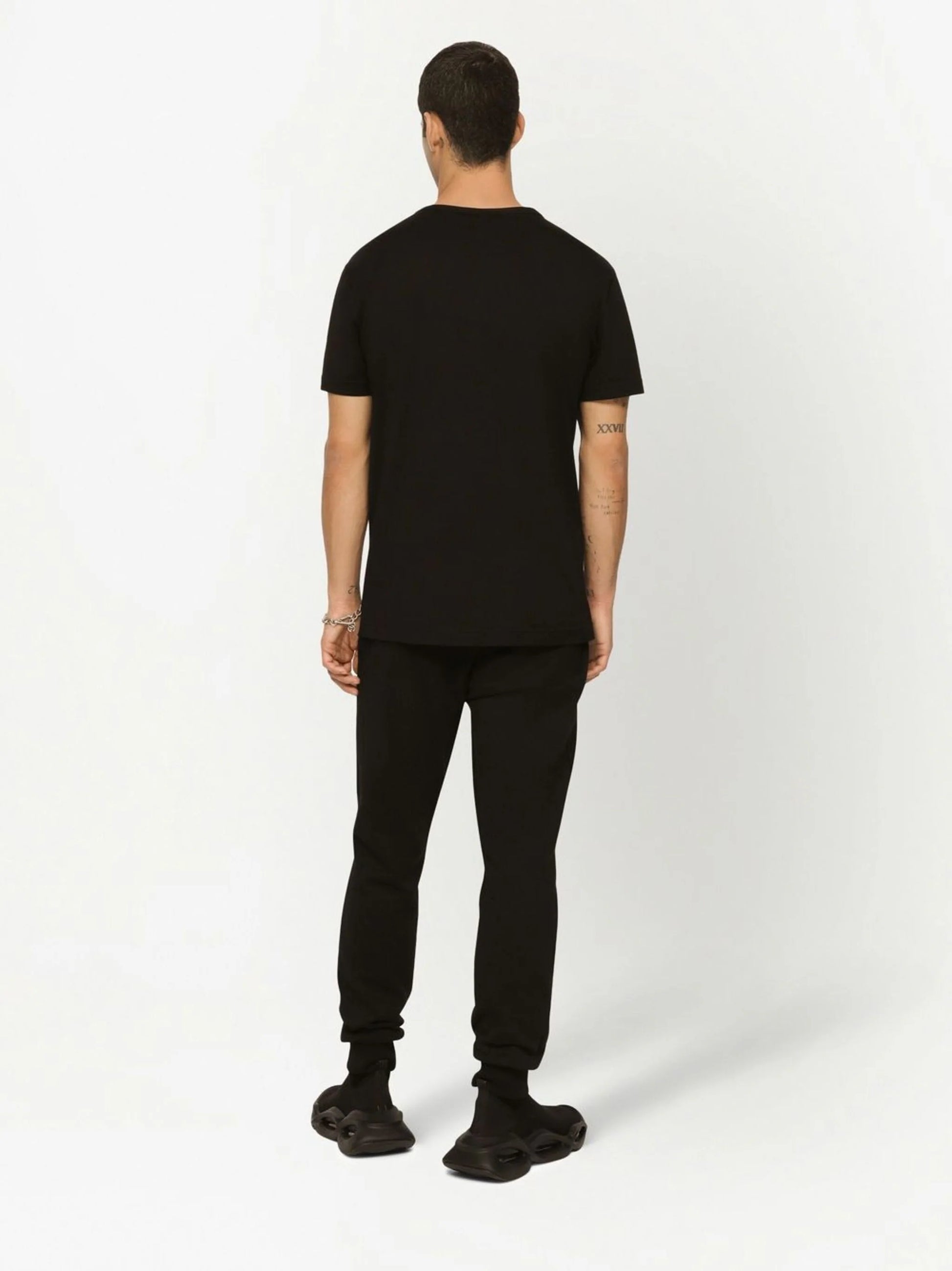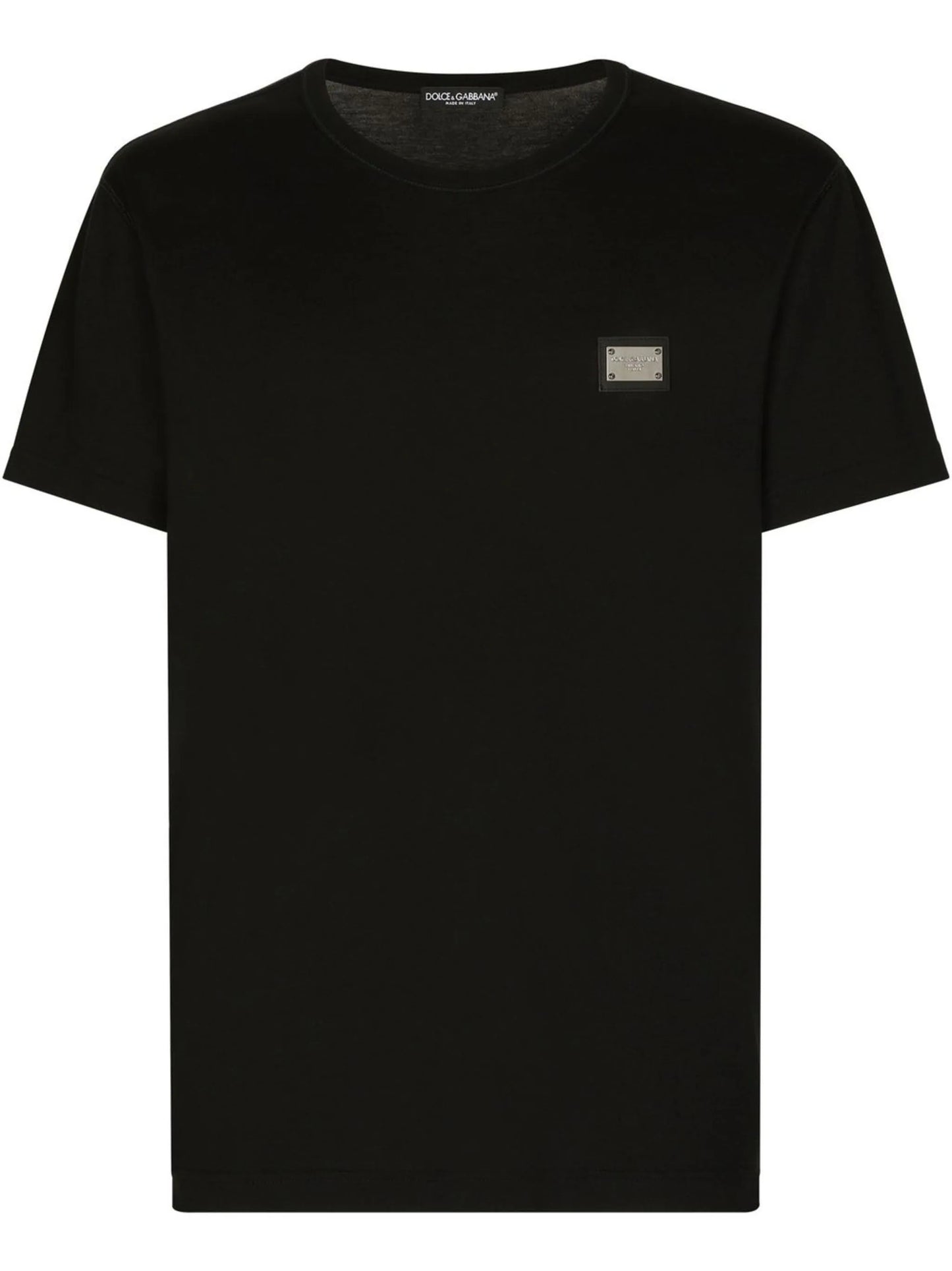 black cotton silver-tone logo plaque crew neck short sleeves straight hem