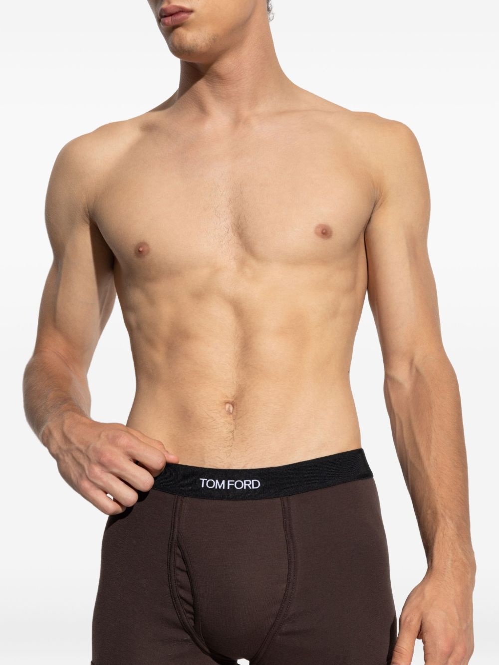 These chocolate brown boxers feature an elasticated logo waistband for a secure and comfortable fit. Designed to thigh length, they provide ample coverage while maintaining ease of movement. Please note, this piece should be tried on over your own garments for hygiene purposes.
