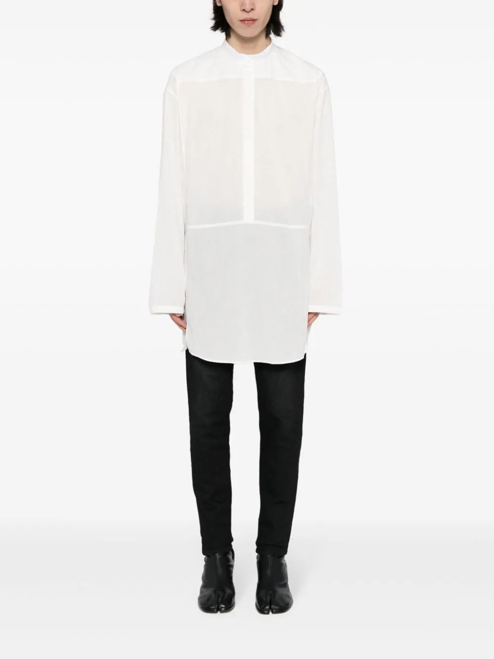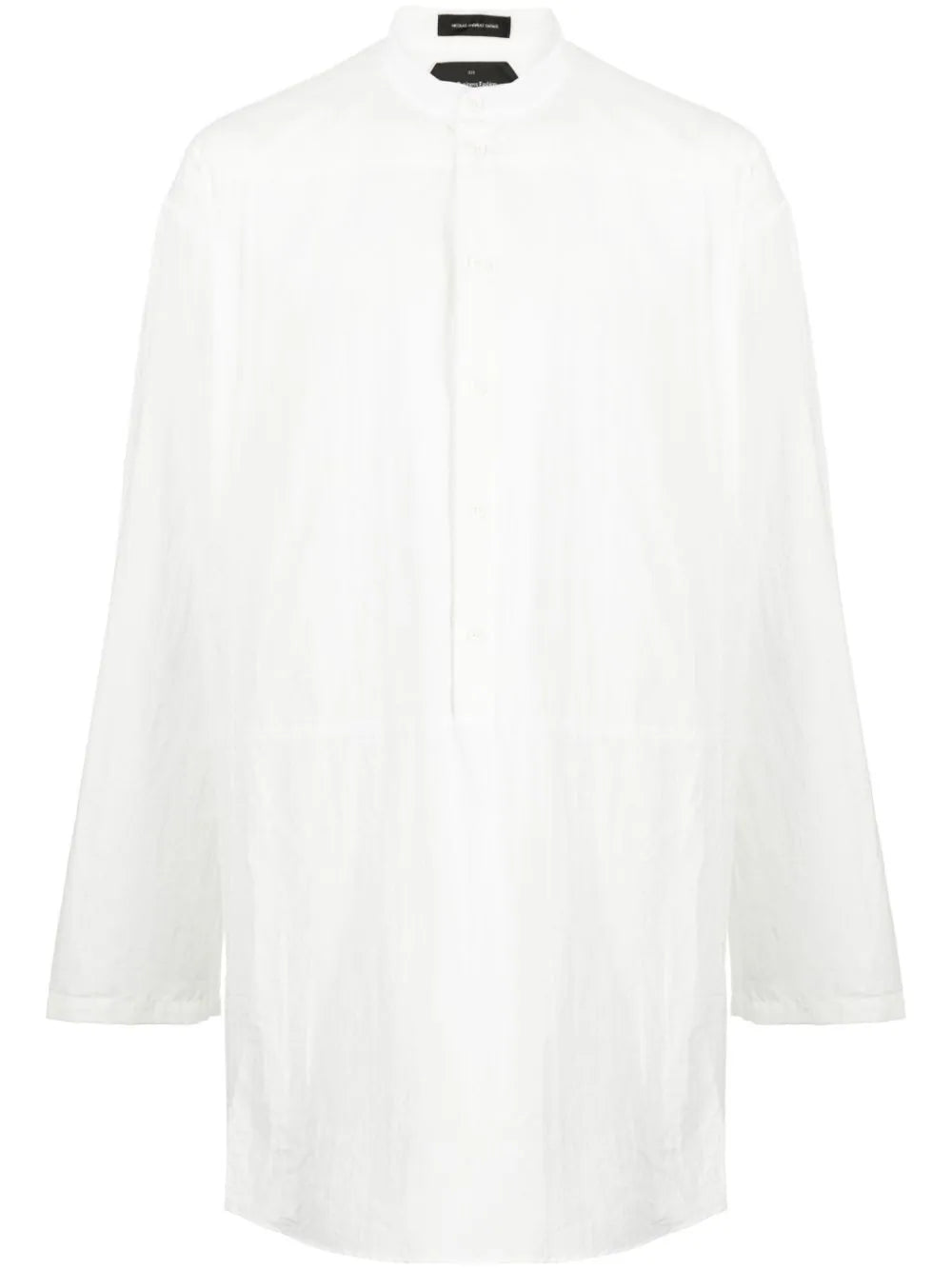 white cotton funnel neck long sleeves front button fastening buttoned cuffs straight hem