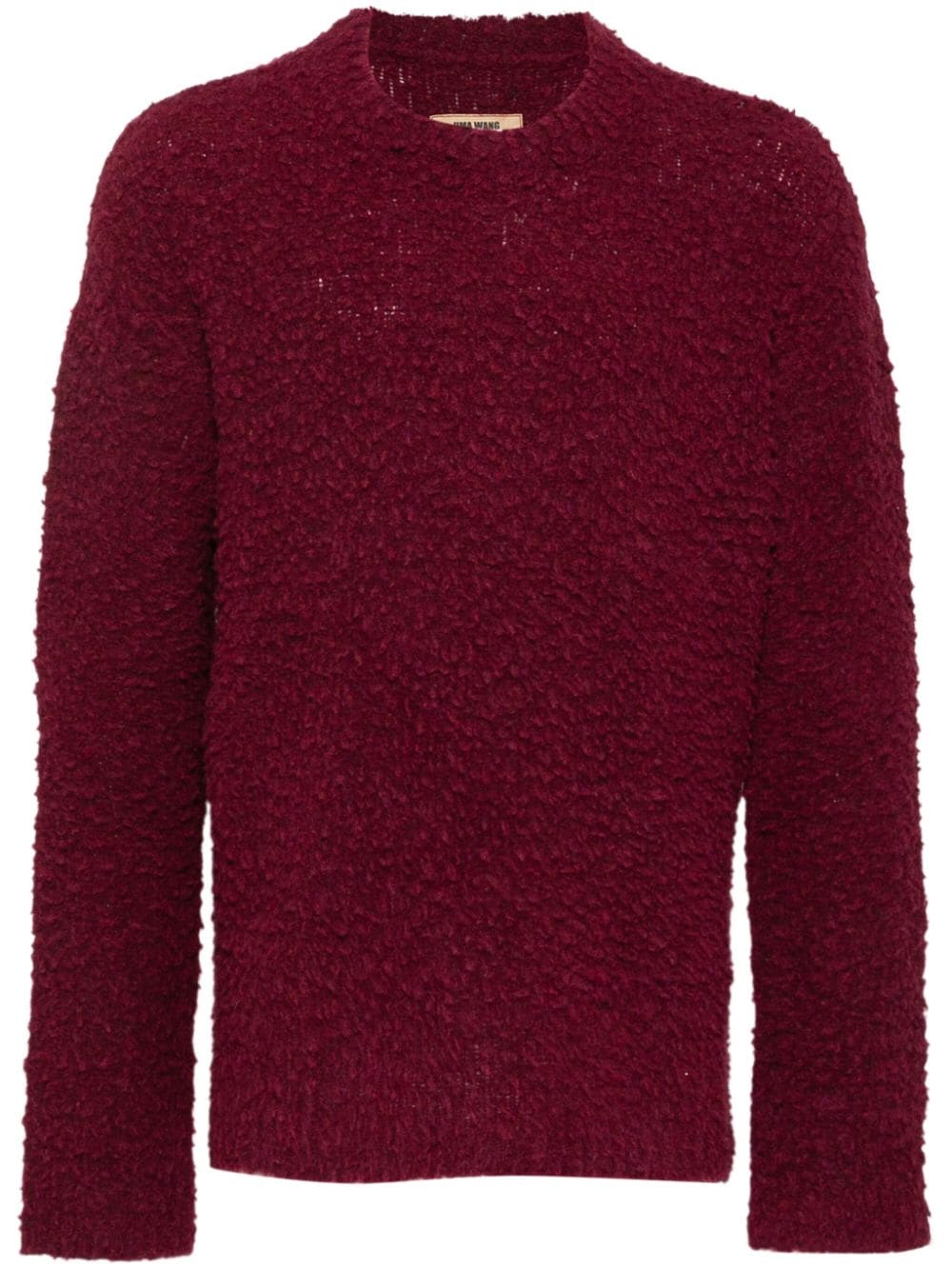 dark red wool-cashmere blend knitted construction crew neck long sleeves ribbed cuffs and hem