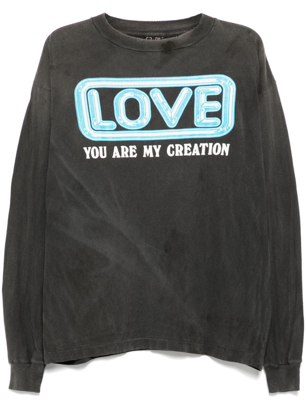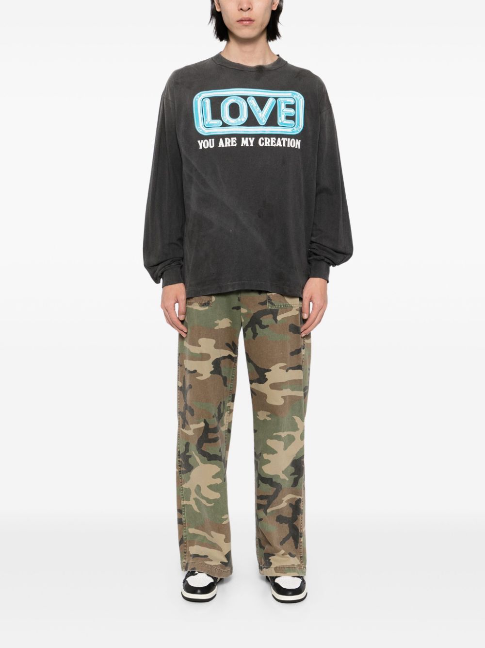 This charcoal grey crew neck t-shirt features short sleeves, ribbed cuffs, and a graphic print on the front and back. Made with high-quality materials, it offers both style and comfort. Perfect for casual wear or a statement piece, this t-shirt is a must-have for any wardrobe.
