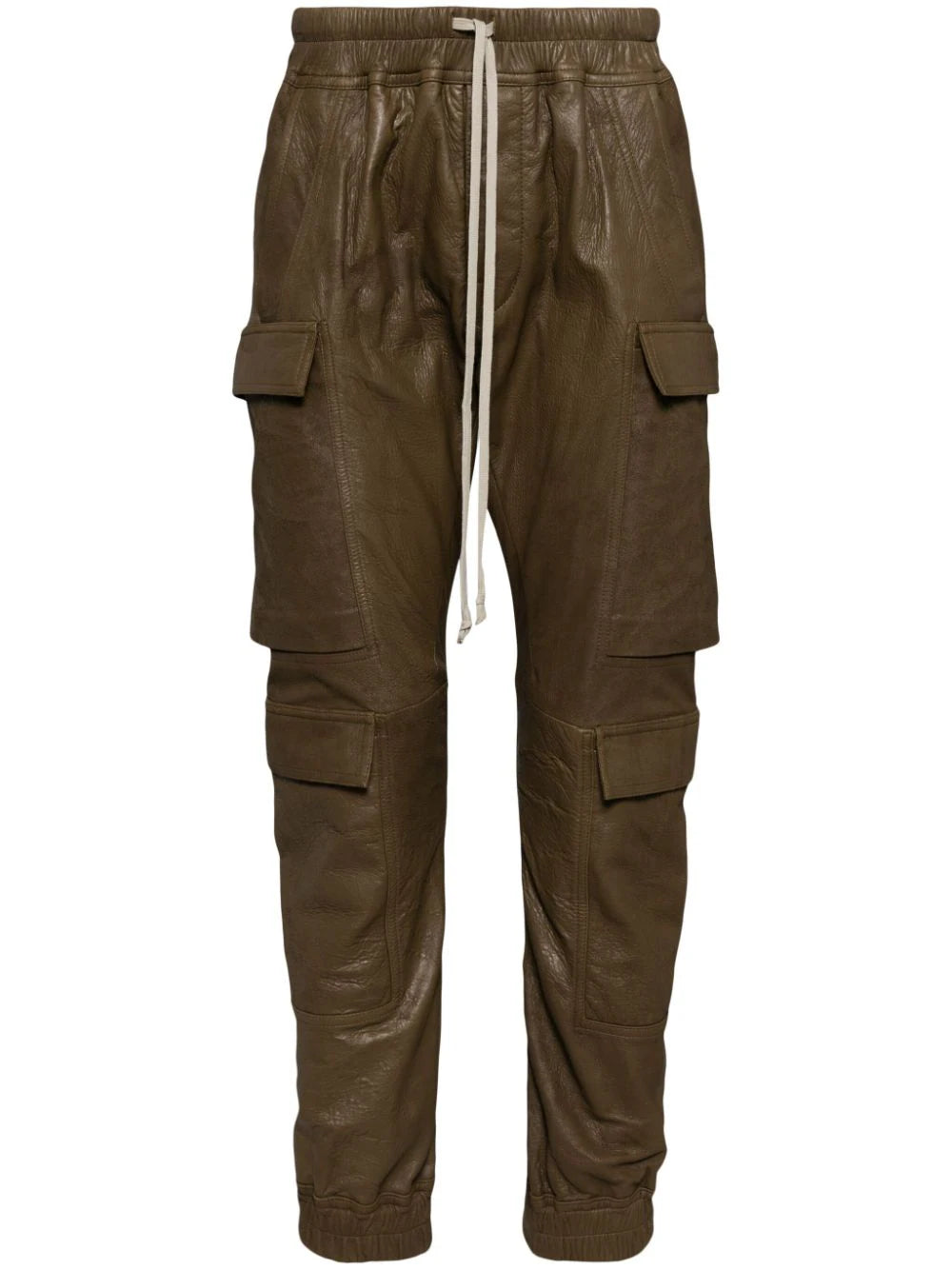 bean brown lambskin elasticated drawstring waistband two front welt pockets multiple cargo pockets two rear flap pockets hook and loop fastening full lining elasticated hem