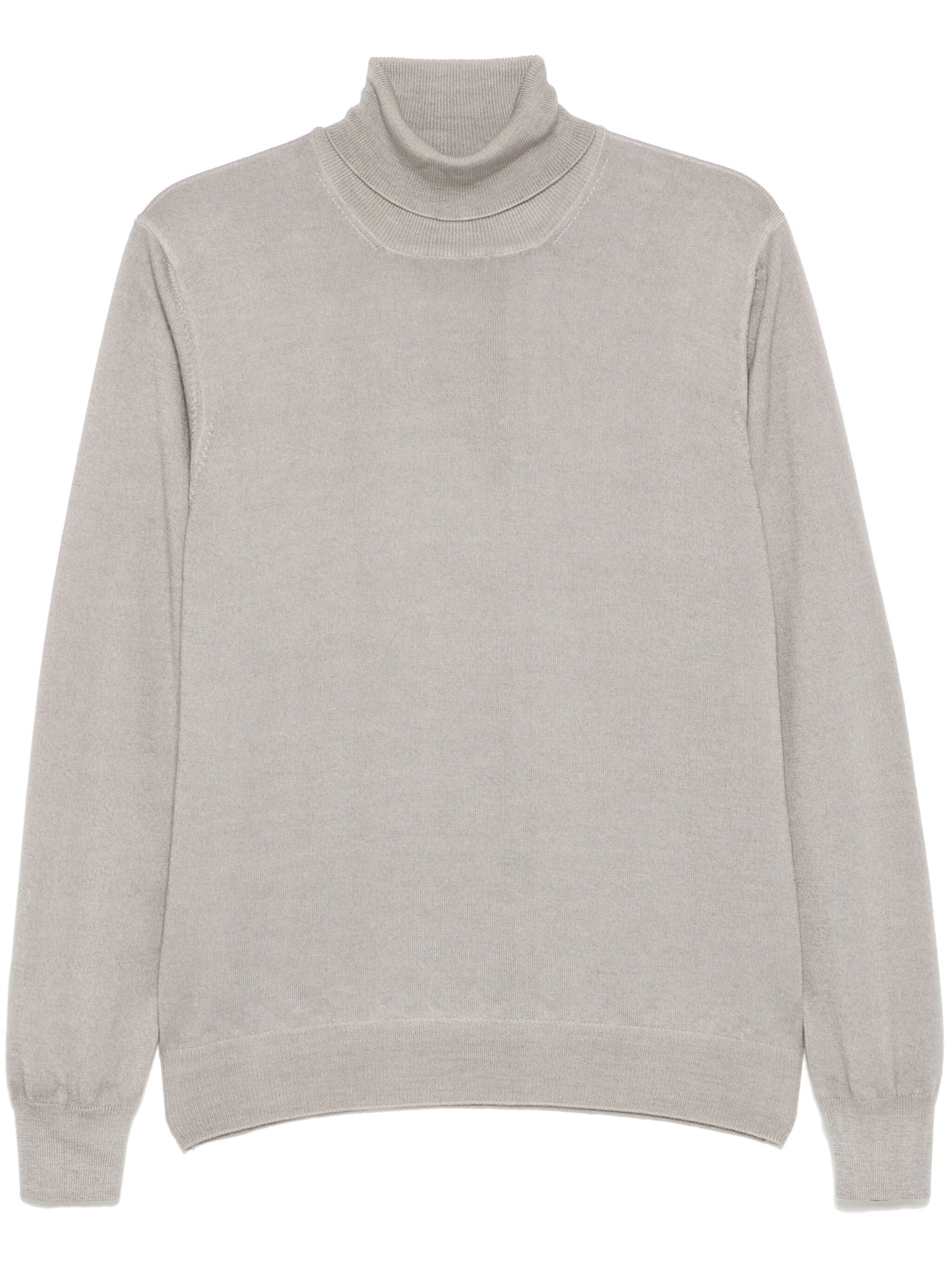 Expertly crafted with grey wool, this fine knit sweater features a cozy roll neck, long sleeves, and ribbed cuffs and hem. Perfect for keeping you warm and stylish, the Miles Sweater is an essential addition to any wardrobe.