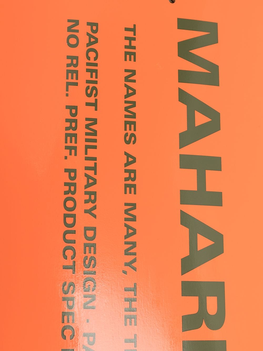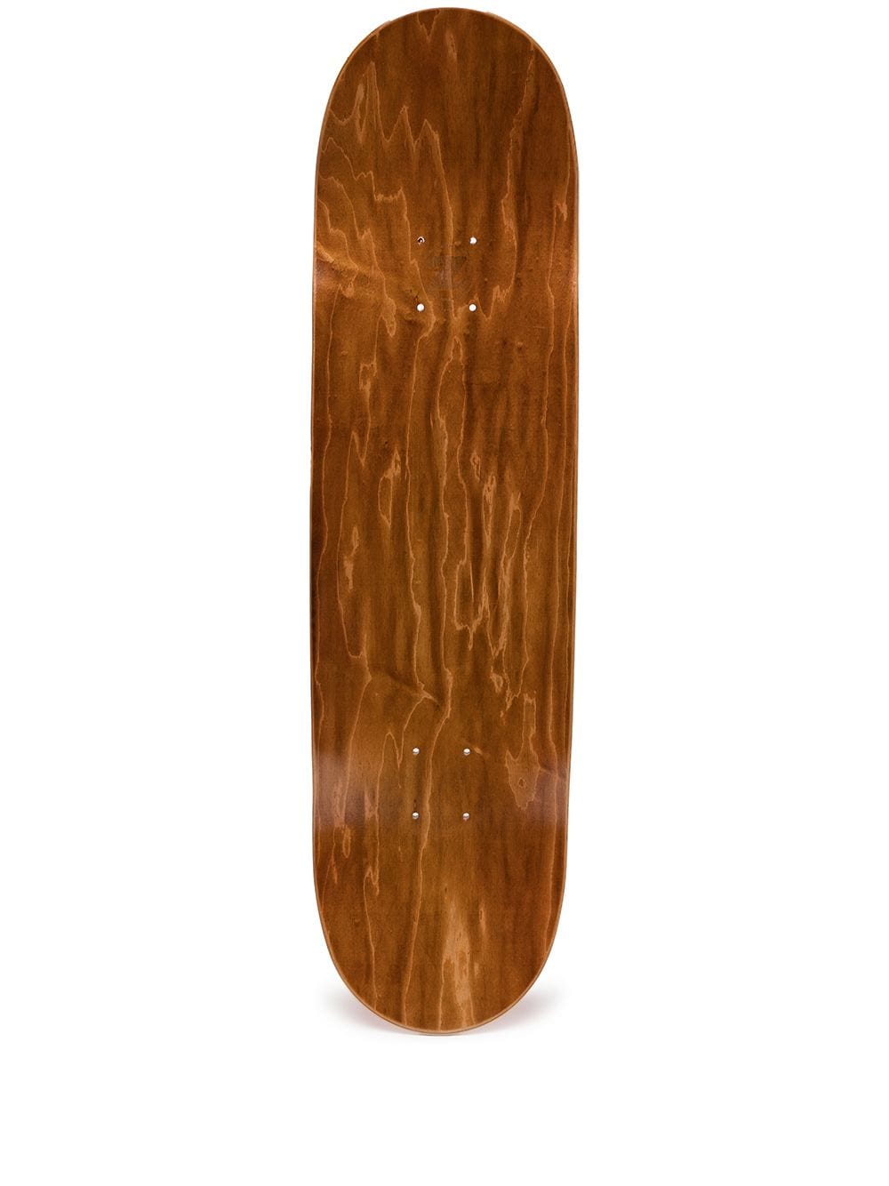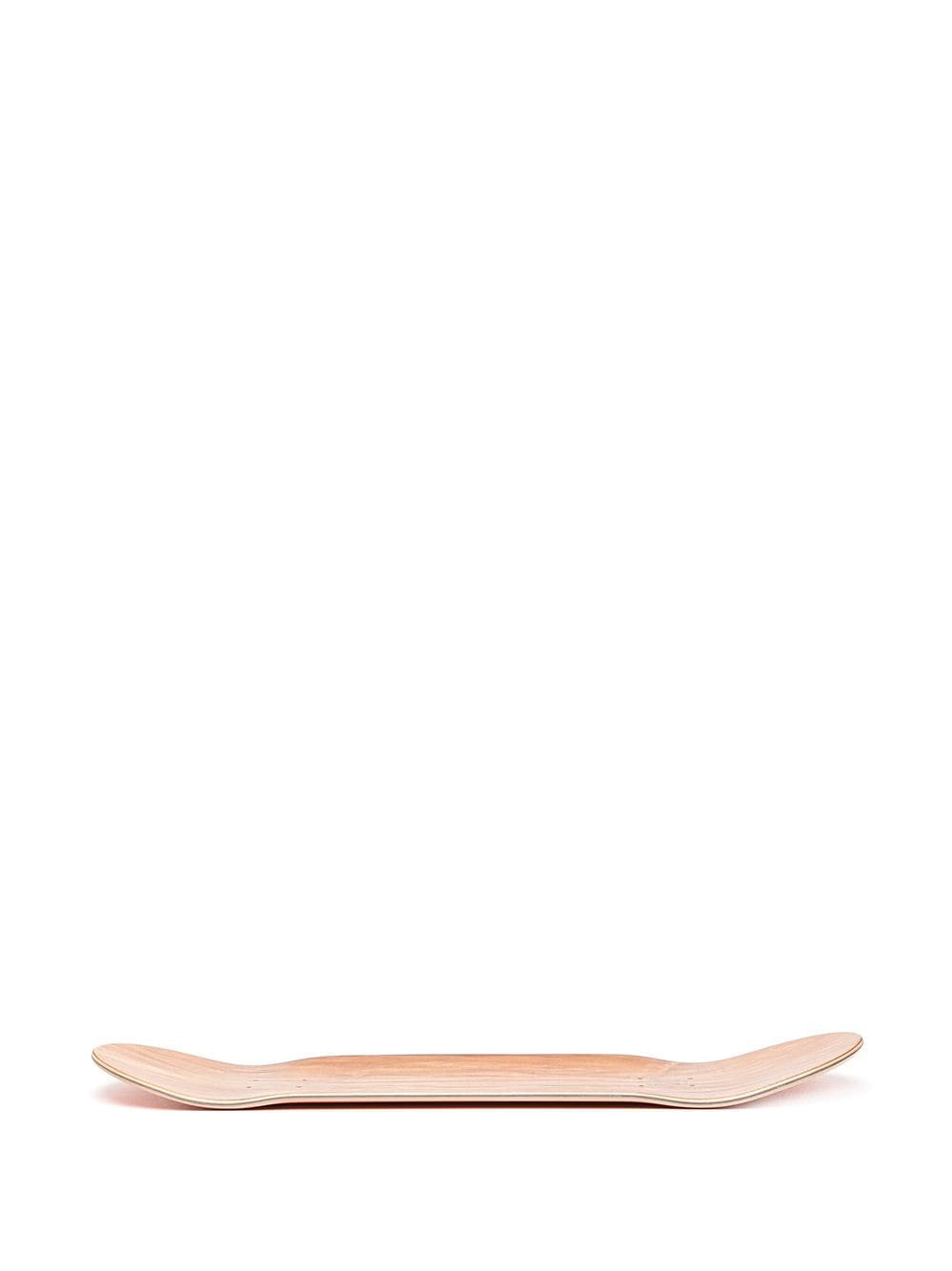 Orange/brown Miltype wood skateboard from MAHARISHI featuring two-tone design, logo print to the rear and wood-grain effect.