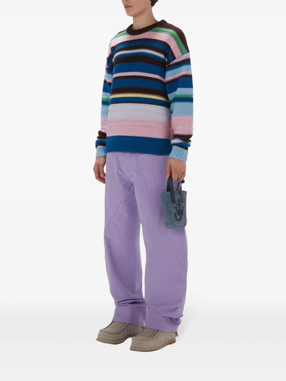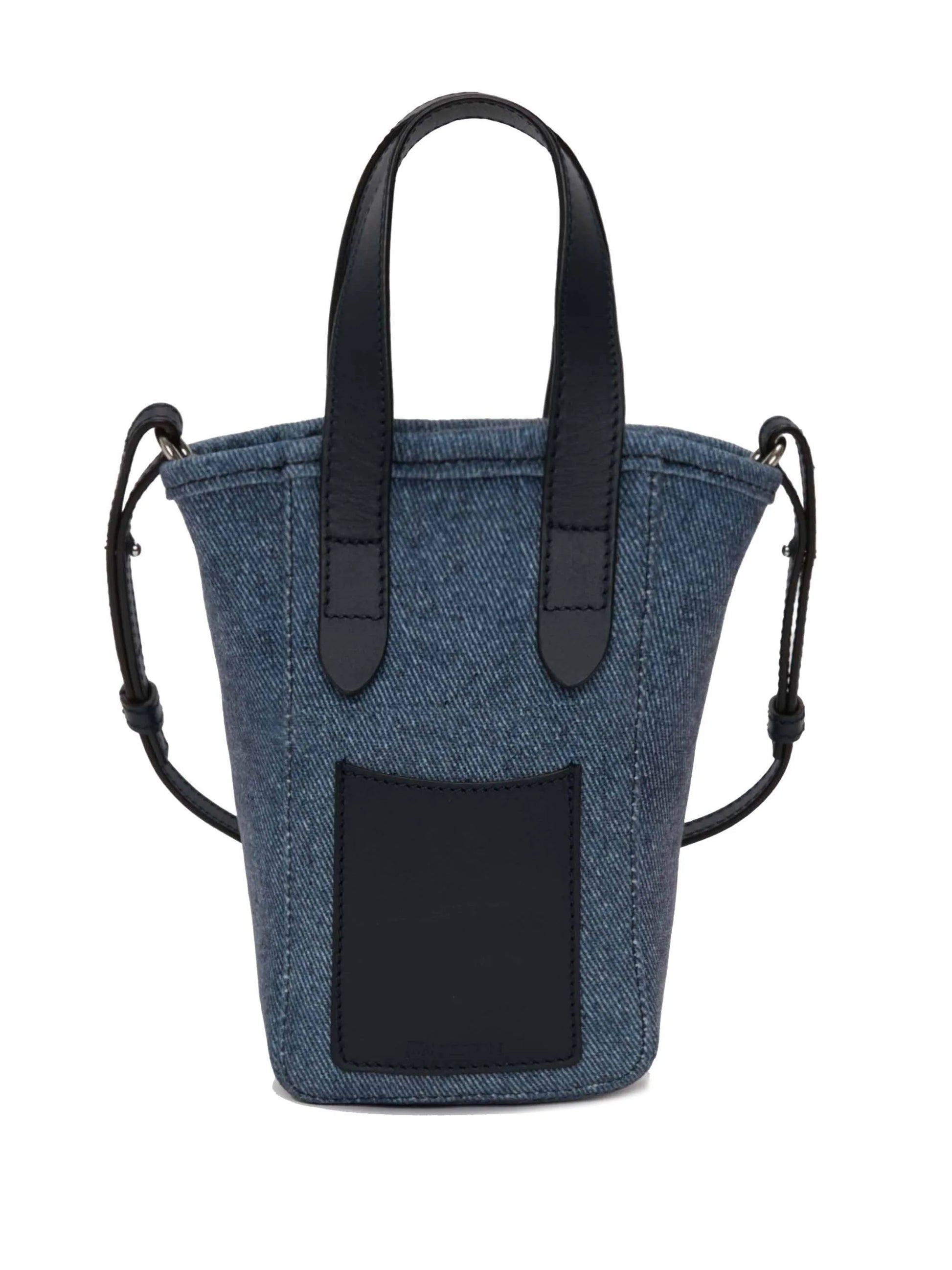 indigo blue/black denim velvet faux-leather trim signature JW-initials anchor logo flat top handles adjustable detachable shoulder strap concealed press-stud fastening slip pocket to the rear main compartment