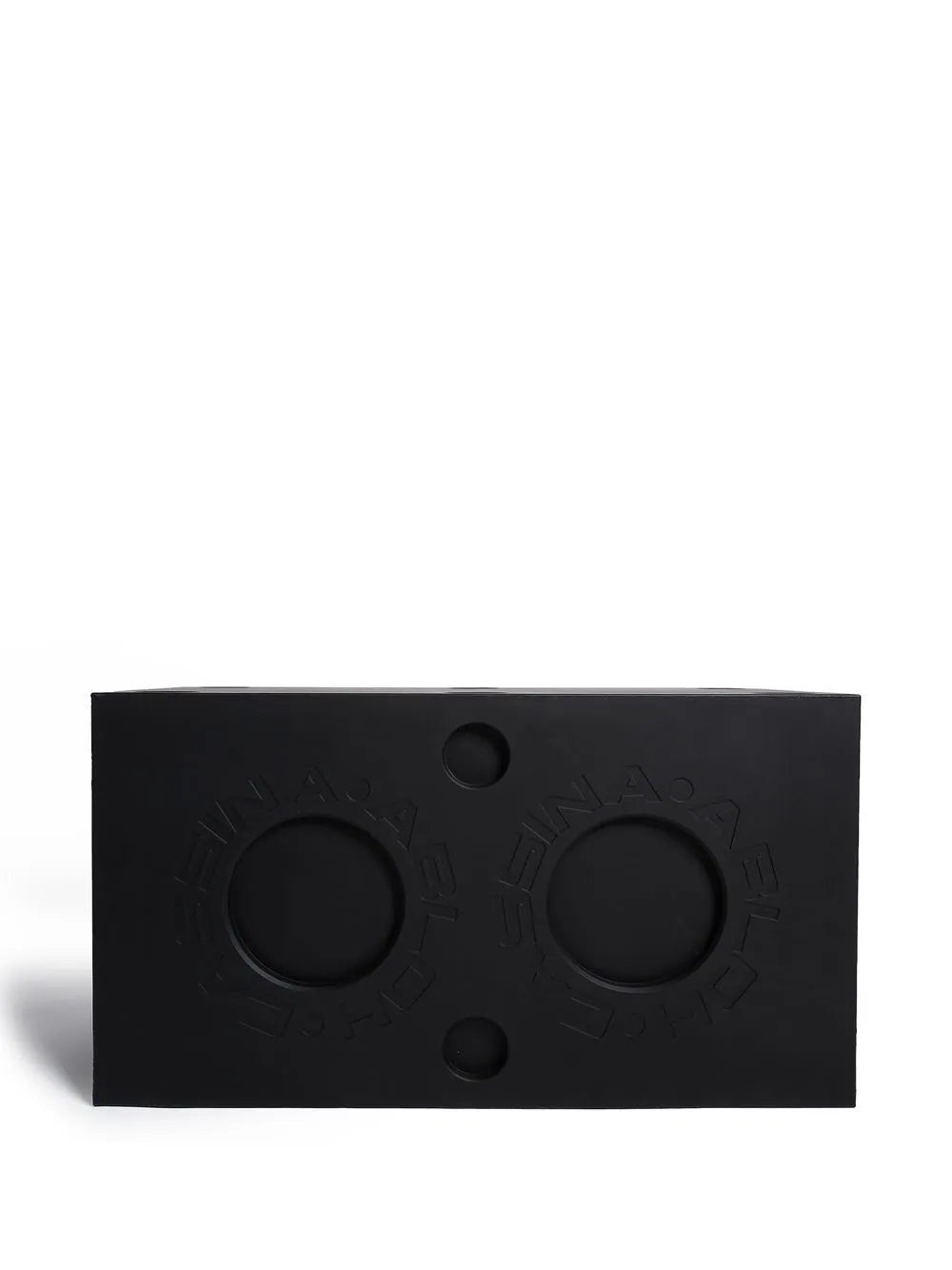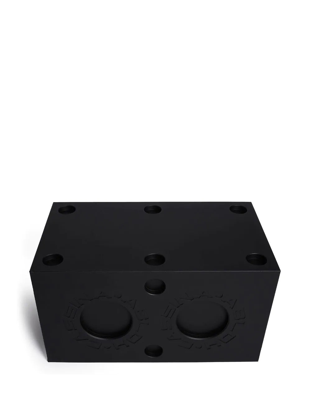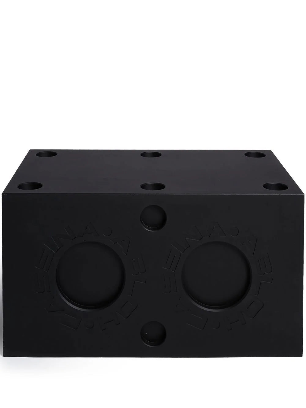 'Modular Imagination by Virgil Abloh' modular element from Cassina featuring black, orange, rectangle shape, all-over debossed logo print, cut-out detailing, contrasting feet and 45cm x 78cm x 45cm.