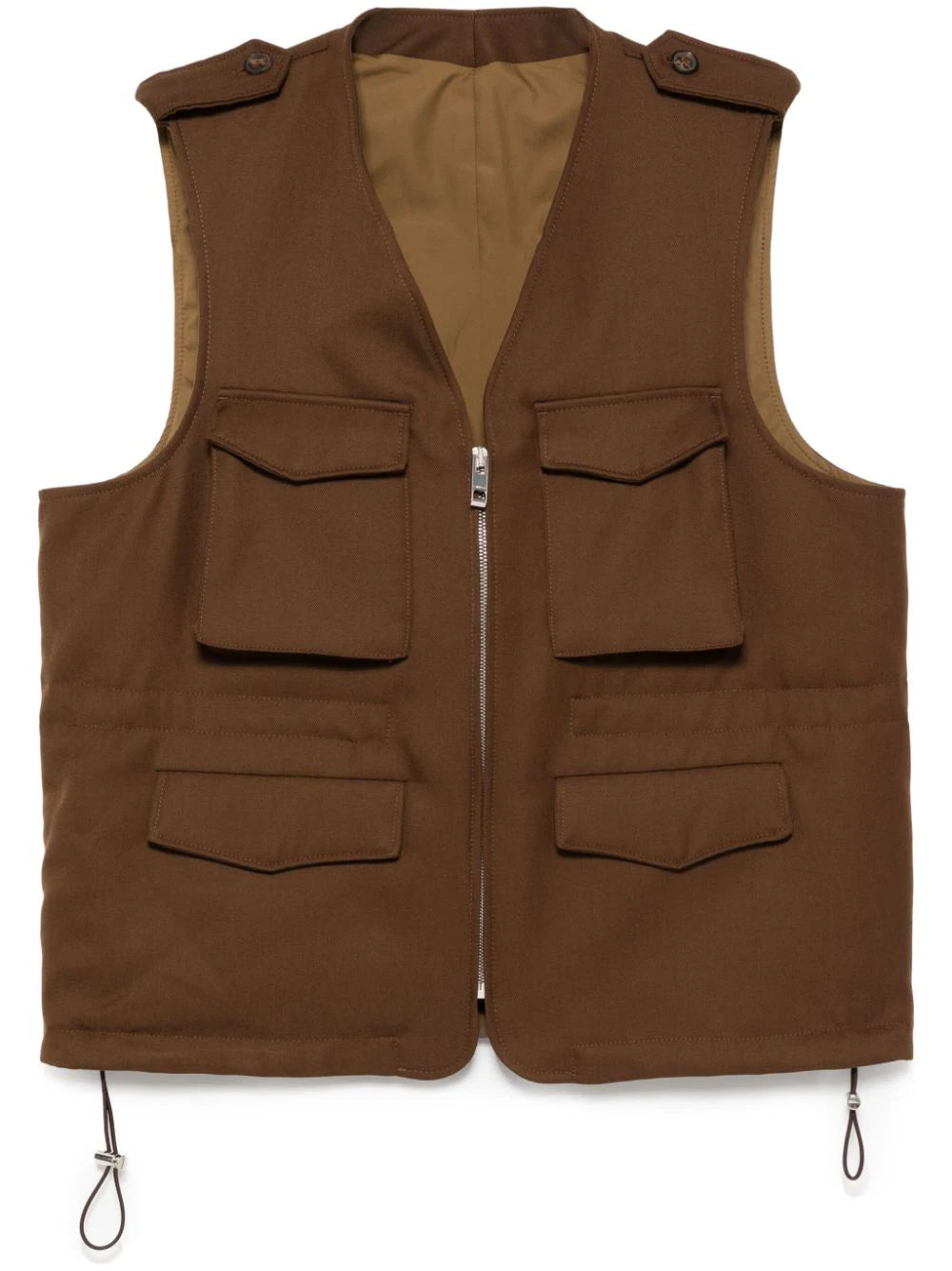 Expertly designed for both style and functionality, our padded gilet is perfect for any outdoor adventure. With a rich chocolate brown color, this gilet features a full front zip fastening, two button-fastening shoulder straps, and four spacious pockets for carrying essentials. The sleeveless design allows for ease of movement, while the elasticated hem provides a comfortable and secure fit. Fully lined for added warmth and durability.