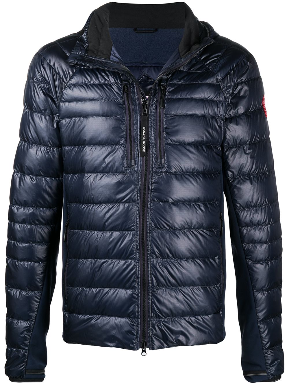 Navy-blue padded zip-up jacket from CANADA GOOSE featuring high-shine finish, padded design, front zip fastening, classic hood and logo patch at the sleeve.