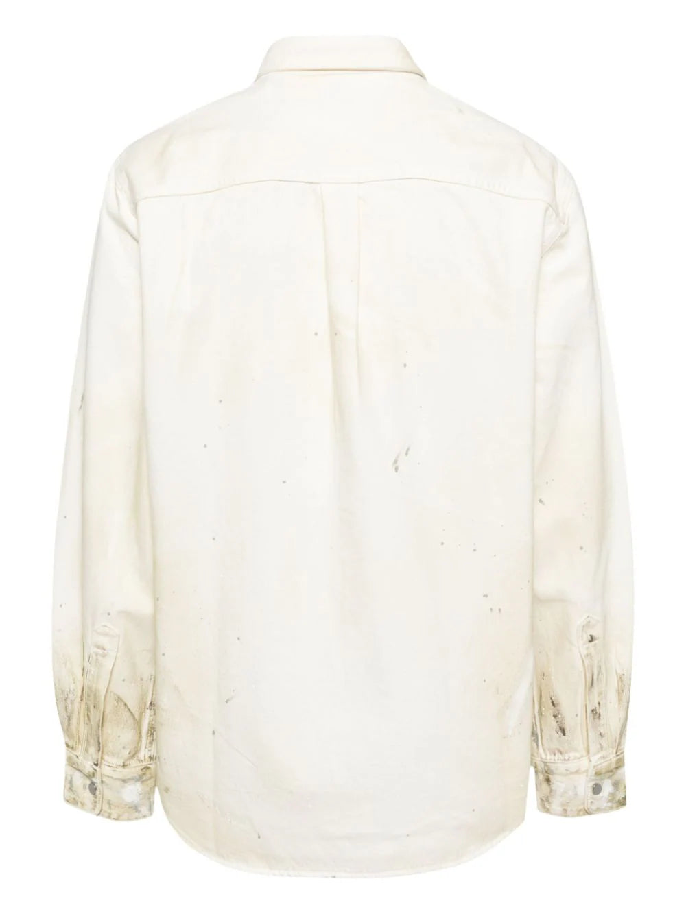ecur painter cotton denim hand-painted design logo plate to the front pointed collar front snap button fastening front patch pocket at chest long sleeves snap buttoned-cuff sleeves curved hem oversized fit This print was created to be entirely unique and might differ slightly from the item pictured