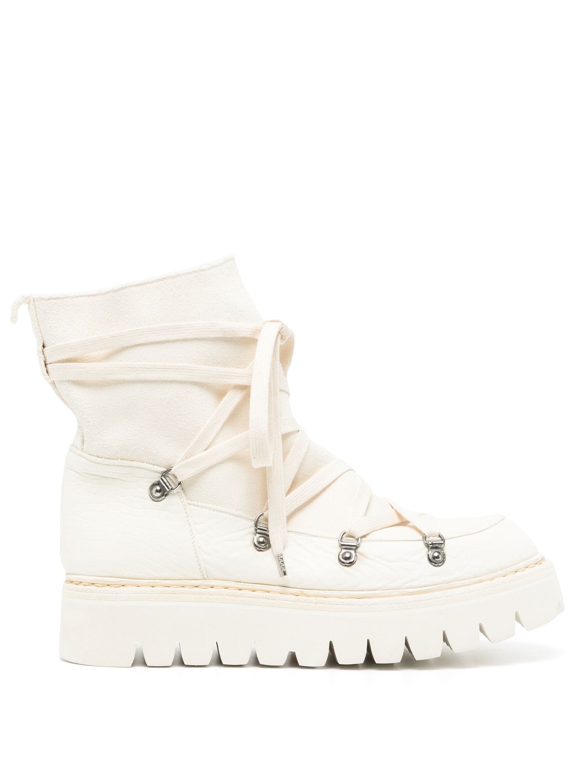 off-white leather panelled design front lace-up fastening rubber toecap round toe chunky rubber lug sole