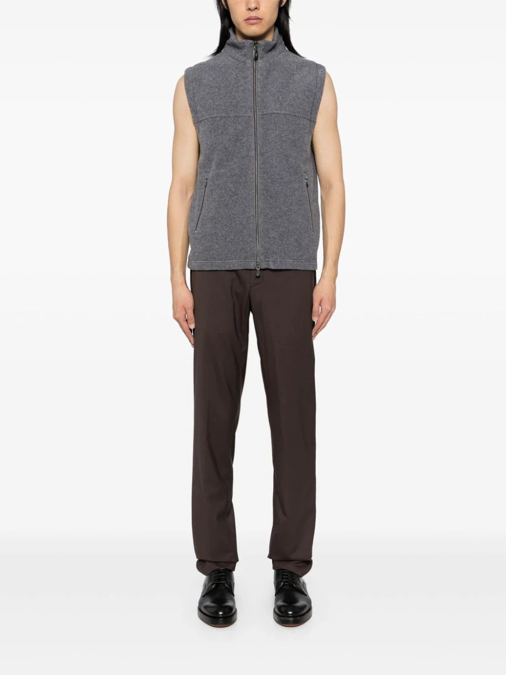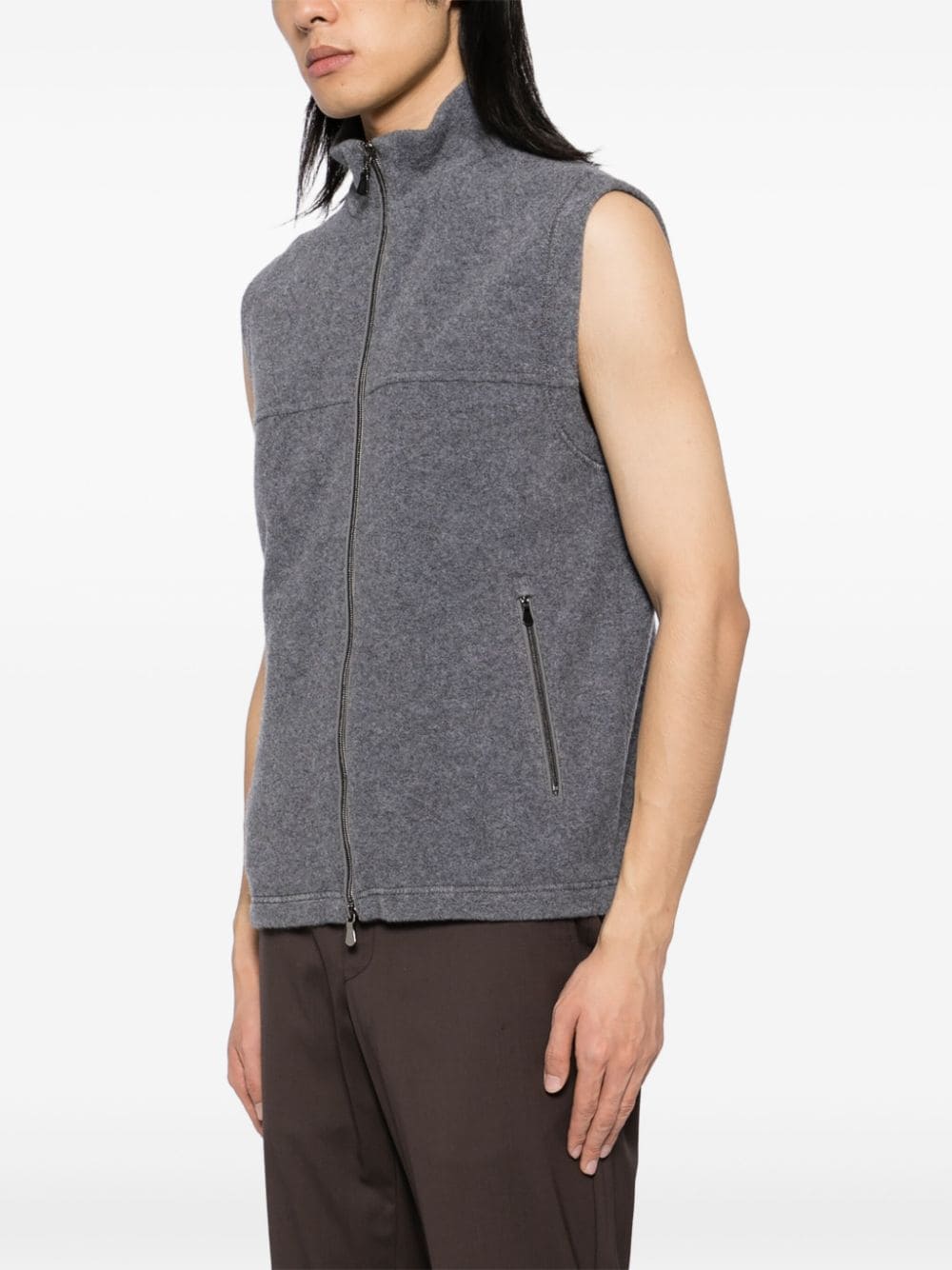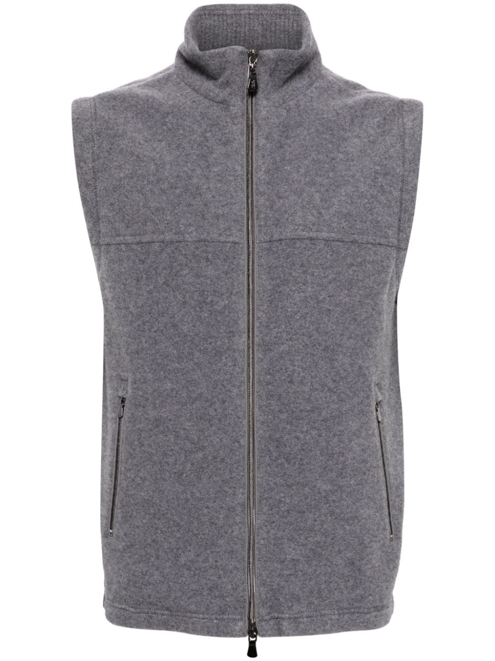 stone grey cashmere front zip fastening spread collar two side zip-fastening pockets sleeveless