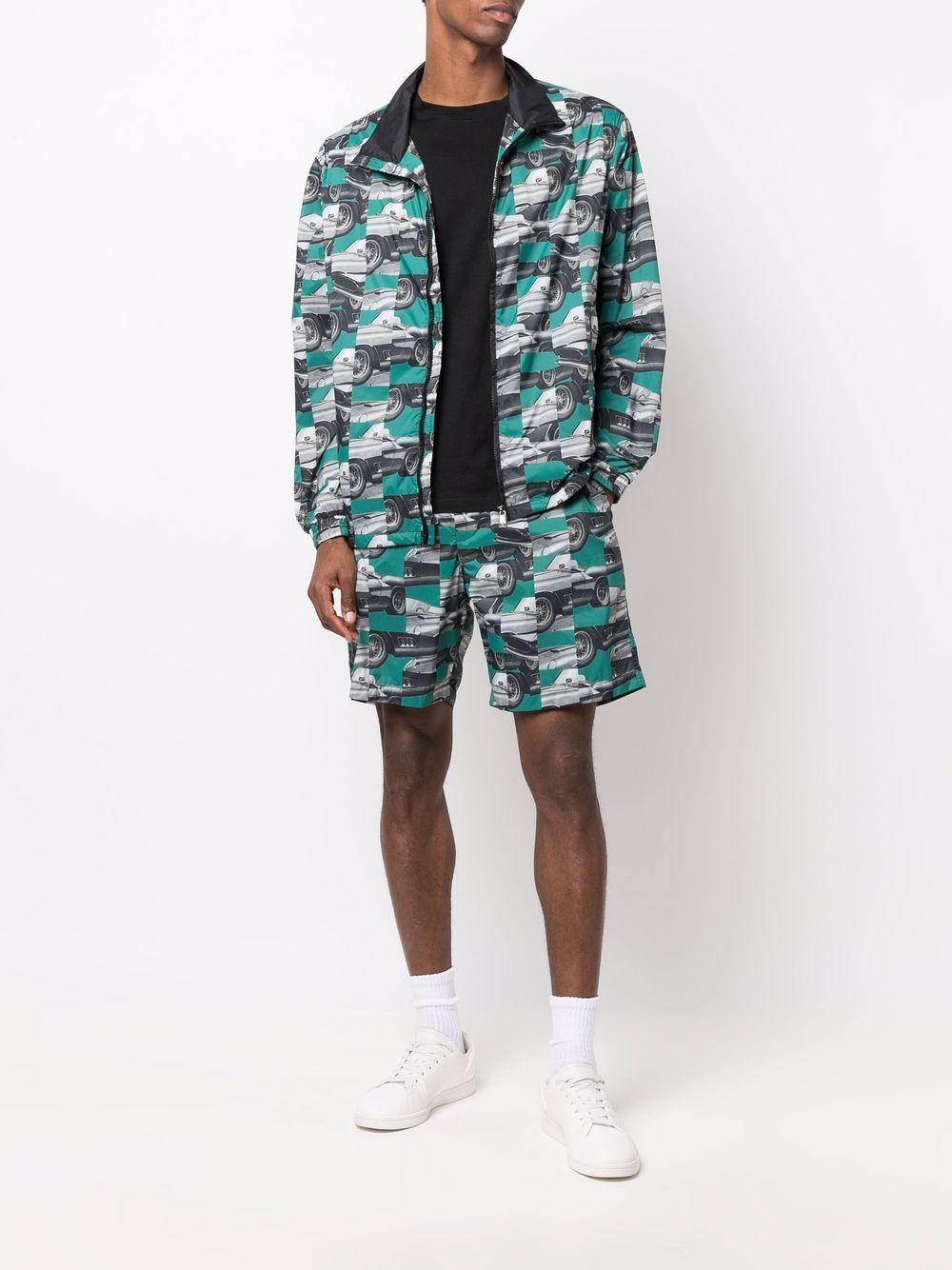 Green/white/black patchwork photograph-print shorts from Ferrari featuring patchwork design, concealed clasp fastening, belt loops and two rear patch pockets. When buying this unisex item, keep in mind that it is graded in standard men's sizing..