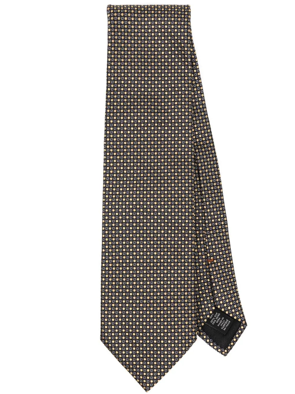 black/multicolour silk geometric and floral patterned jacquard pointed tip internal logo tag wraparound style adjustable fit