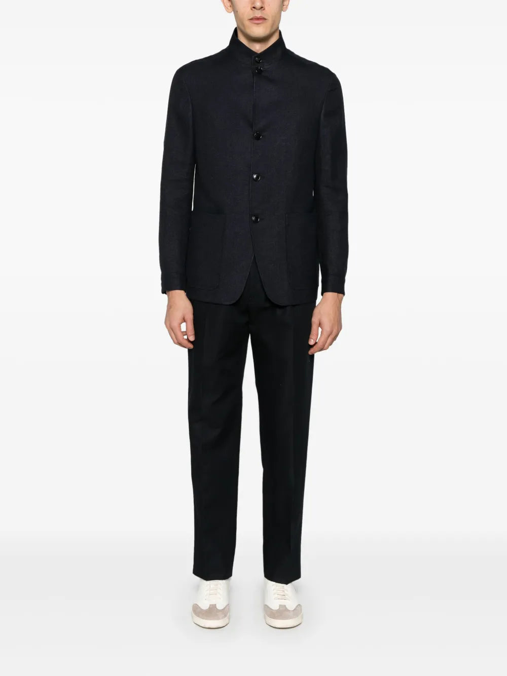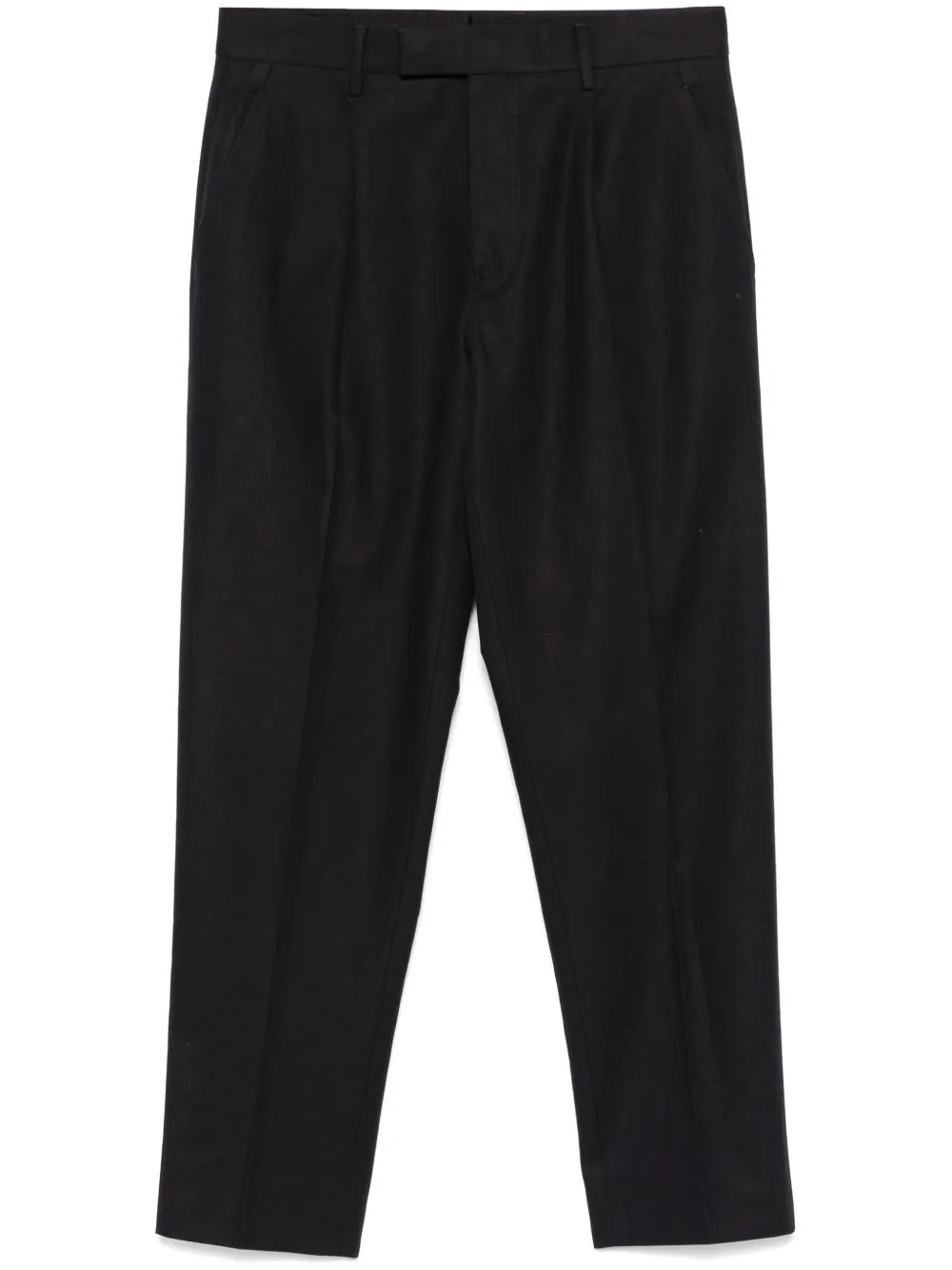 Constructed from high-quality material, these Pleat-Detail Trousers feature a midnight blue color, concealed front button, hook and zip fastening, and multiple pockets for added convenience. With a classic design and versatile features, these trousers are perfect for any professional or formal occasion.