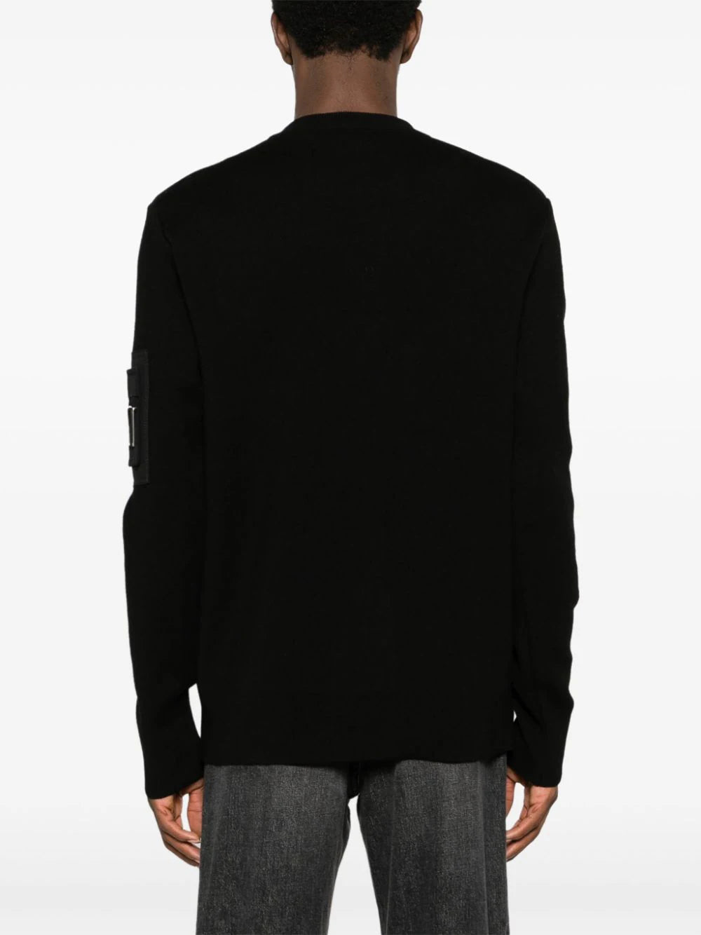 black wool knitted construction sleeve zip pocket crew neck long sleeves ribbed trim silver-tone hardware straight hem