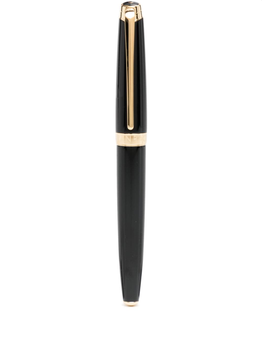 polished ballpoint pen from Caran d'Ache featuring black, gold-tone, ballpoint style, polished effect and engraved logo.