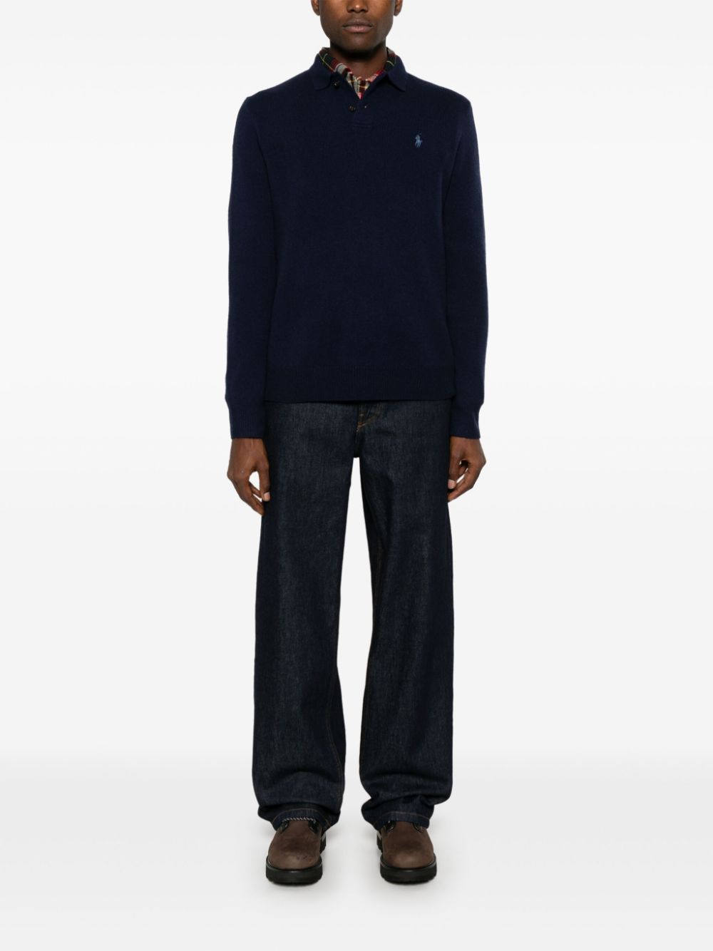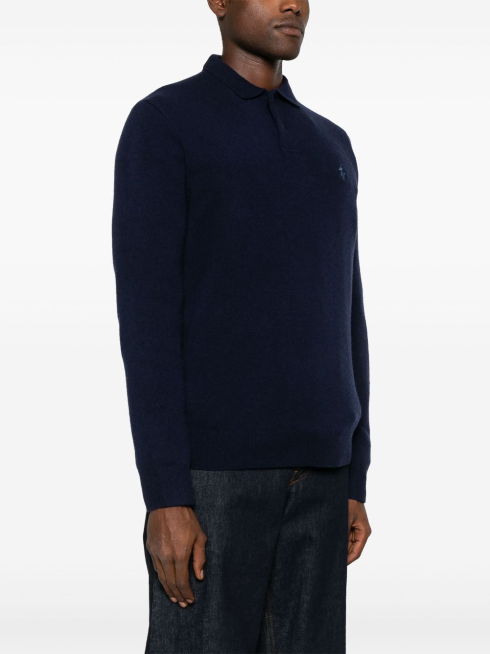 Expertly crafted from a luxurious wool-cashmere blend, this navy blue Polo Pony Polo Shirt features a timeless knitted construction. The iconic Polo Pony motif adds a touch of sophistication, while the short front button fastening and polo collar make it a versatile addition to any wardrobe. With long sleeves and ribbed cuffs and hem, this unlined shirt offers both style and comfort.