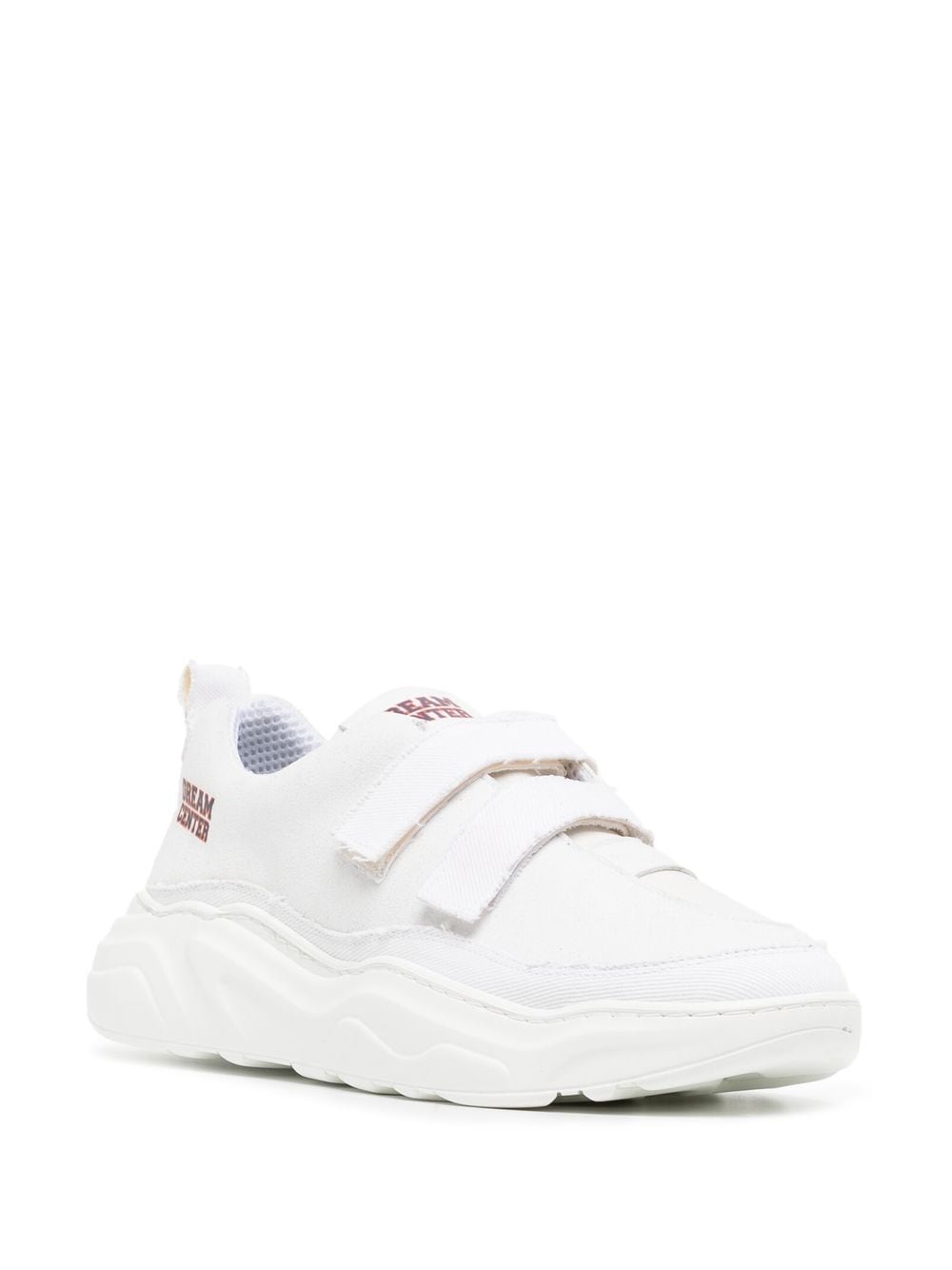 printed low-top sneakers from PHILEO PARIS featuring white, recycled nylon, faux suede, canvas, graphic print to the rear, logo print to the side, pull-tab at the heel, front touch-strap fastening, round toe, branded footbed and chunky rubber sole.