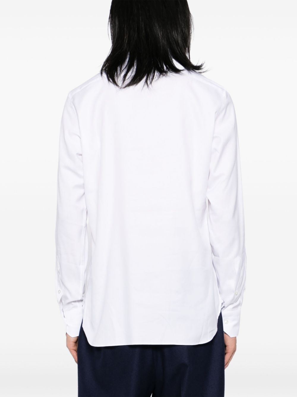 Expertly crafted with a classic collar and long sleeves, our Sartorial Shirt offers a sophisticated look for any occasion. Its white front button fastening and buttoned cuffs add a touch of elegance. Made with attention to detail, this shirt is a must-have in any wardrobe.