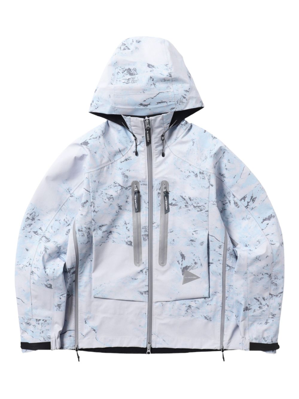 The Shield Printed Waterproof Jacket features a light blue hooded design with front zip fastening, as well as two chest pockets and touch-strap cuffs for maximum convenience. Its printed detailing adds a stylish touch to this functional and durable jacket, perfect for any rainy day.