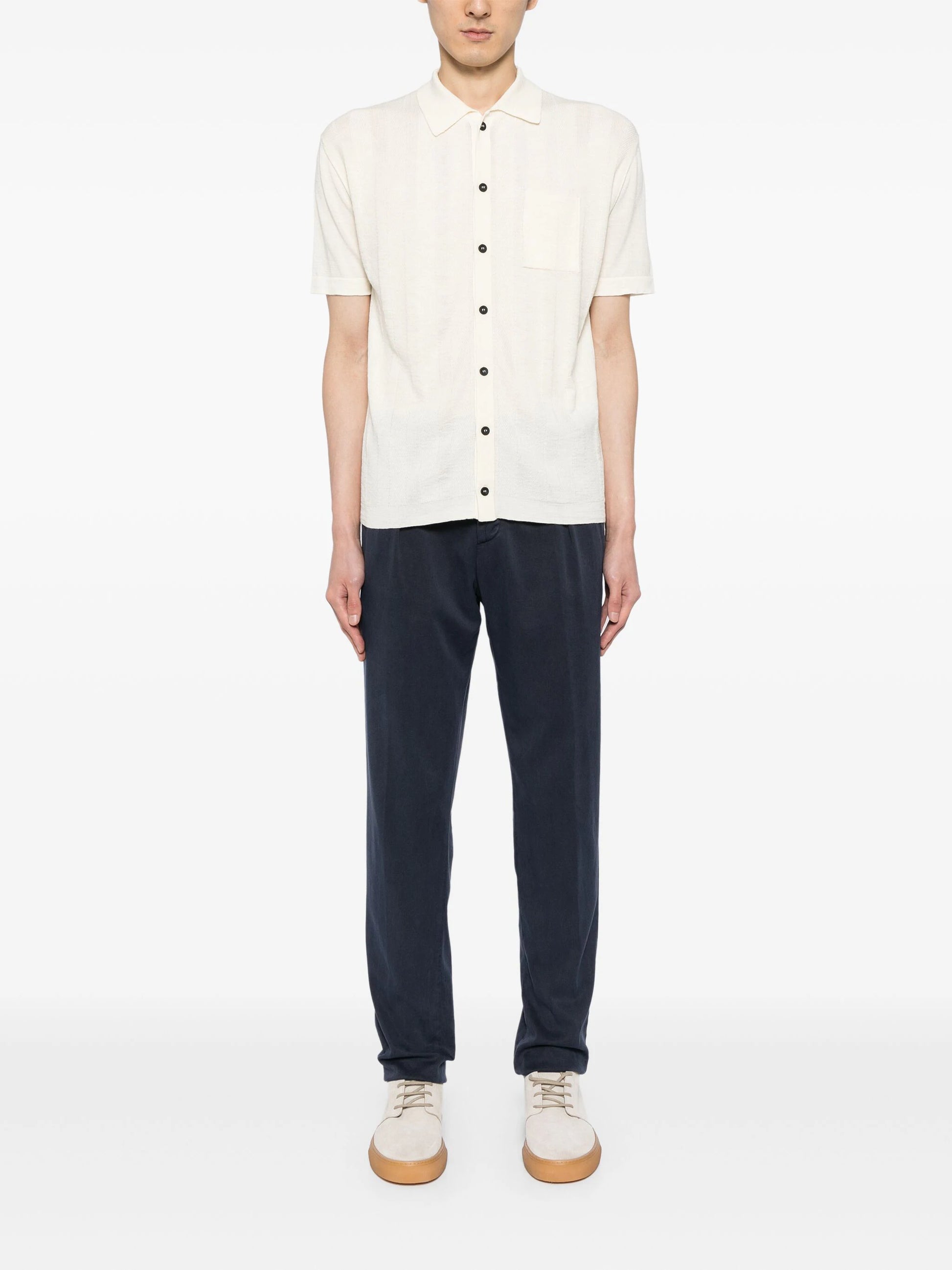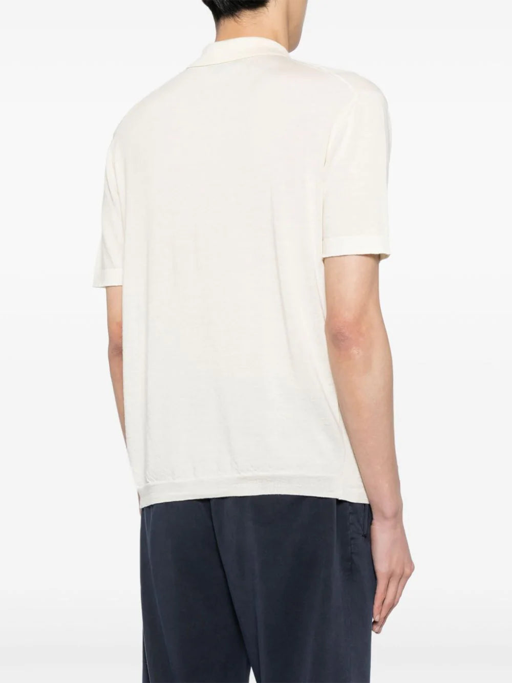 white virgin wool-silk blend fine knit spread collar front button fastening chest patch pocket short sleeves straight hem